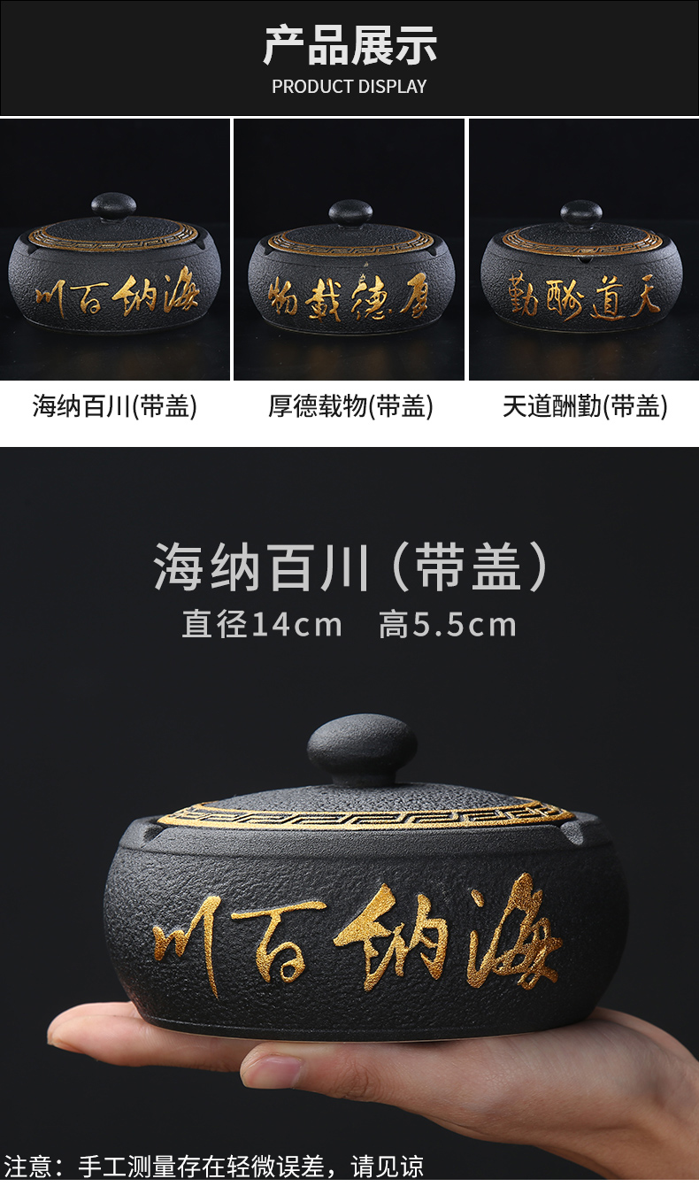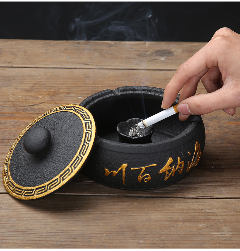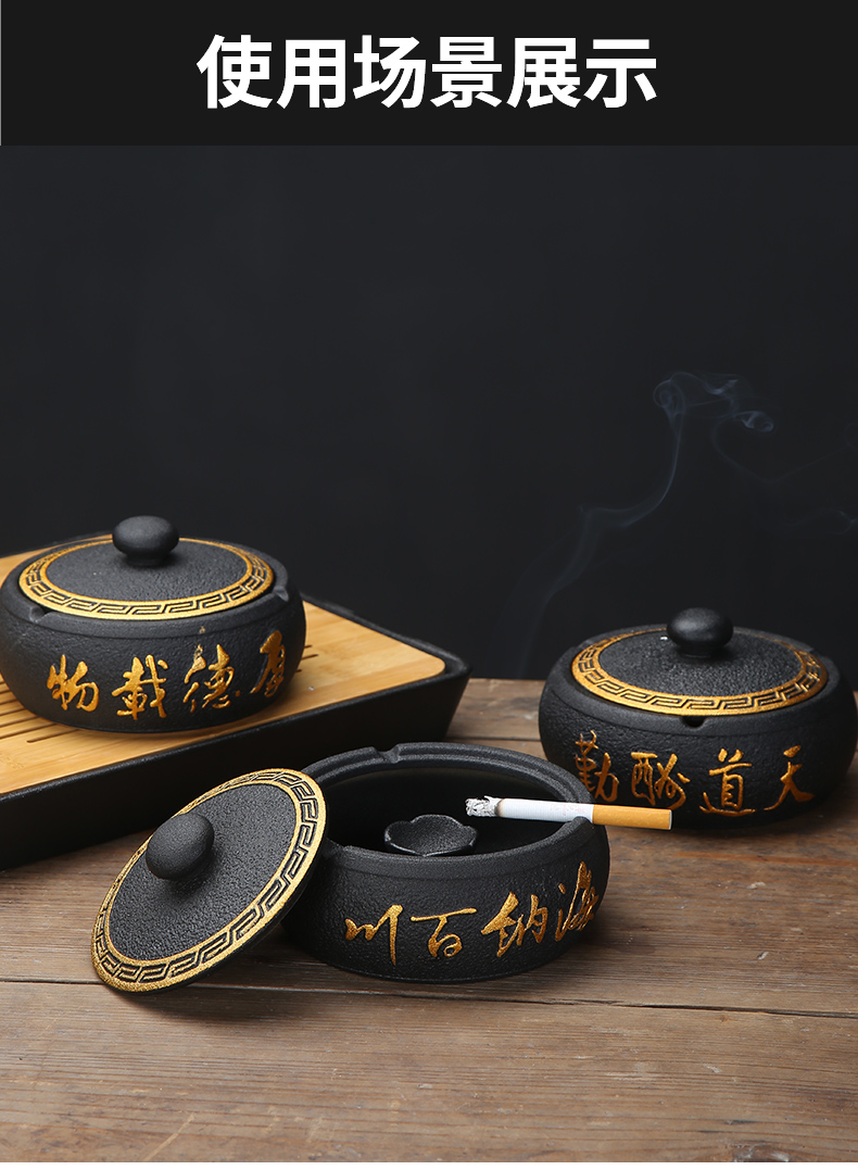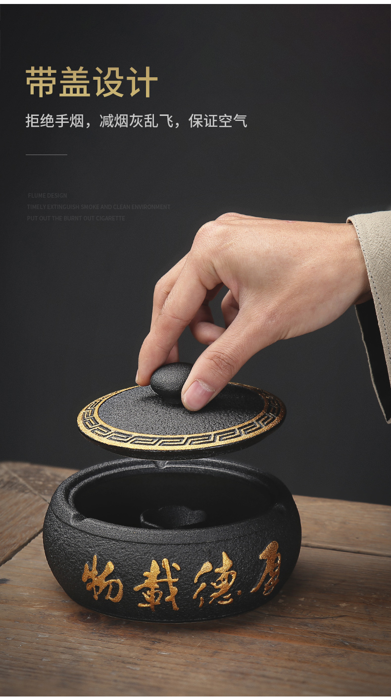 烟灰缸创意家用办公室个性陶瓷客厅中式防飞灰轻奢有盖烟满和스토어 가기