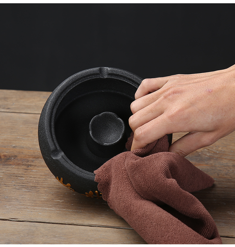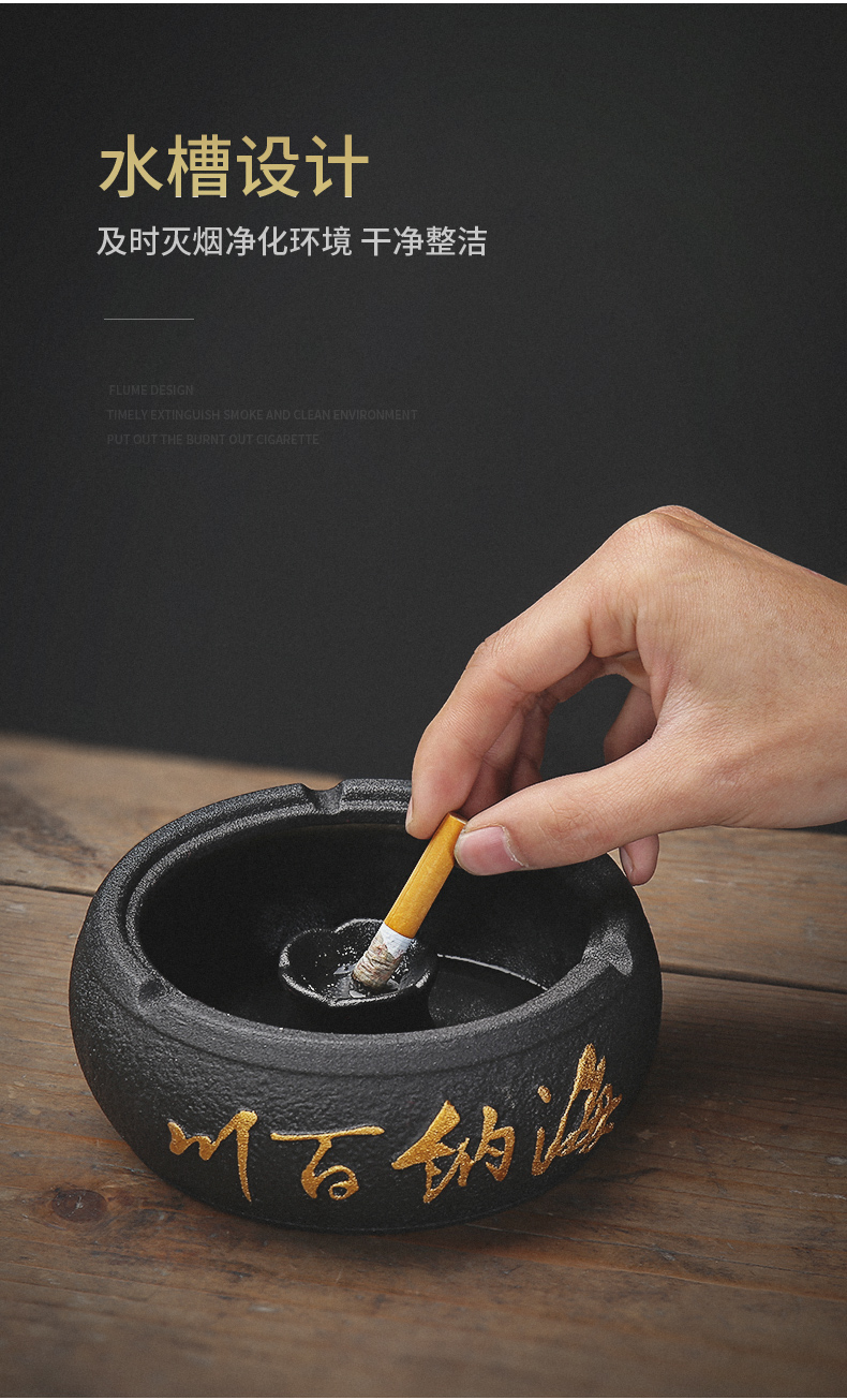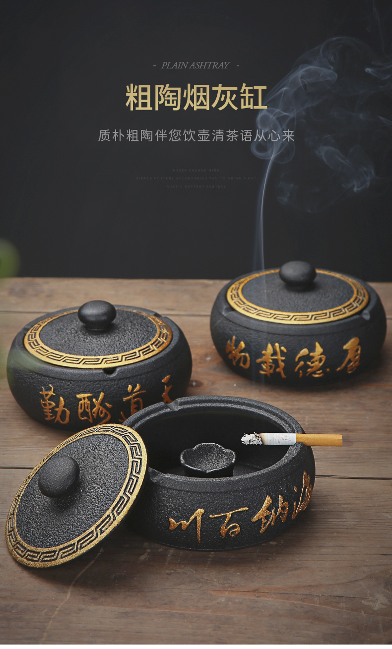 烟灰缸创意家用办公室个性陶瓷客厅中式防飞灰轻奢有盖烟满和스토어 가기