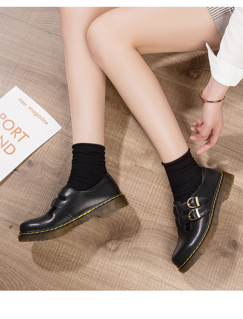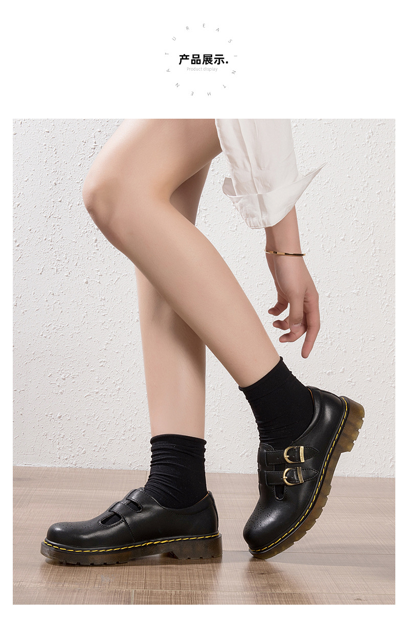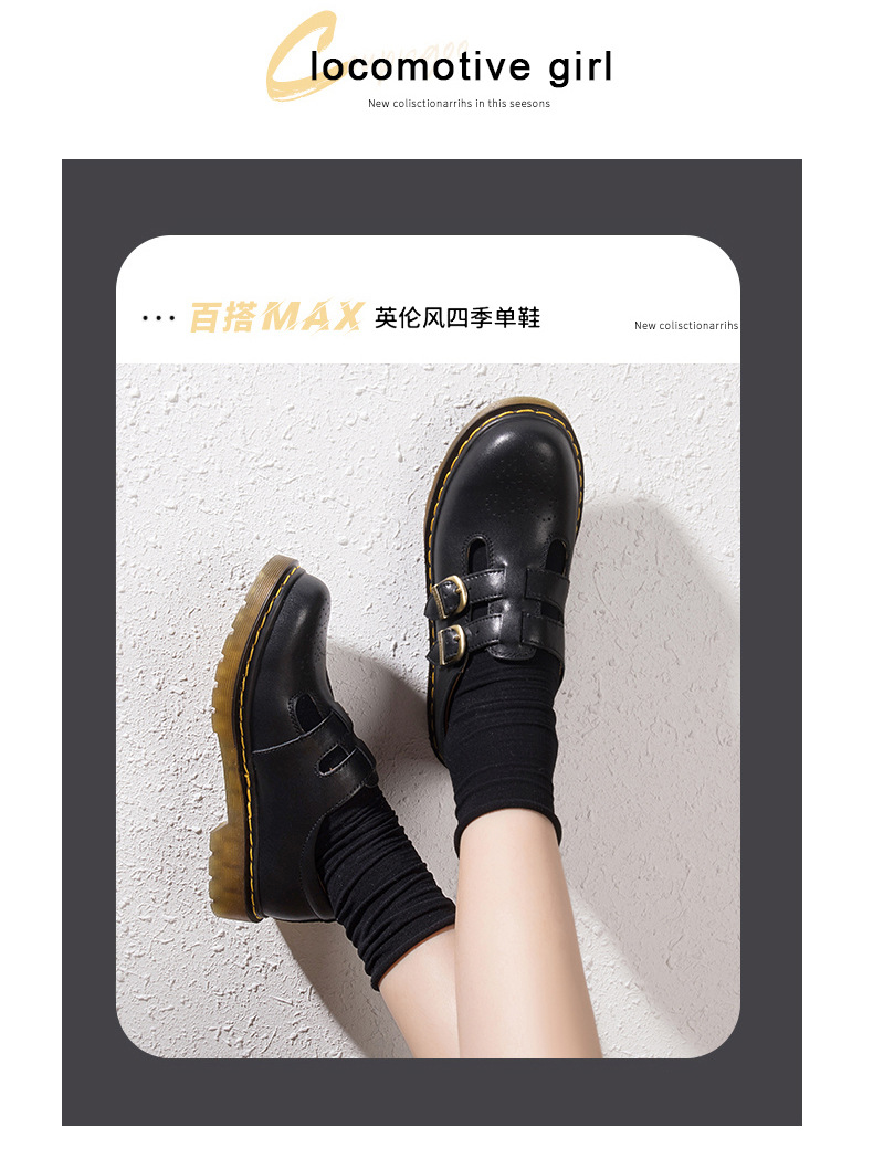 검은 작은 가죽 신발 여성의 2024 가을 새로운 영국 스타일 복고풍 두꺼운 단독 JK 싱글 레이어 신발 벨트 버클 로퍼 증가스토어 가기