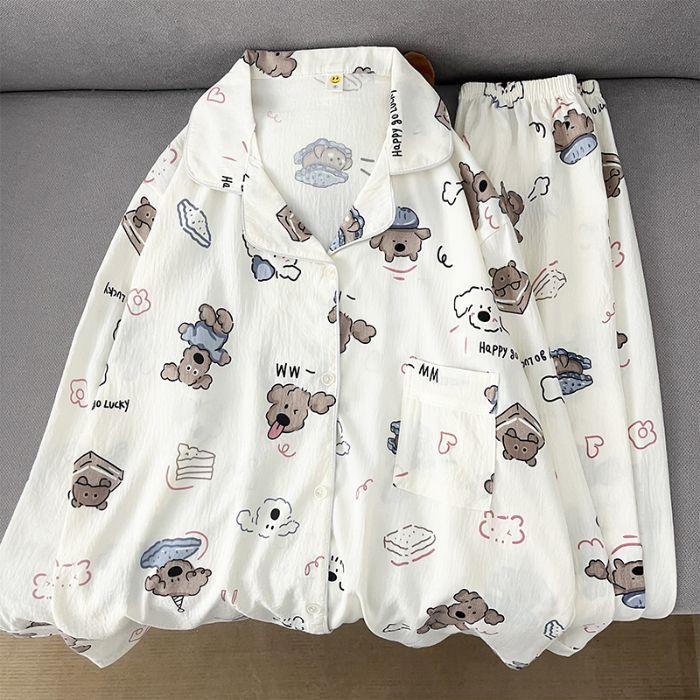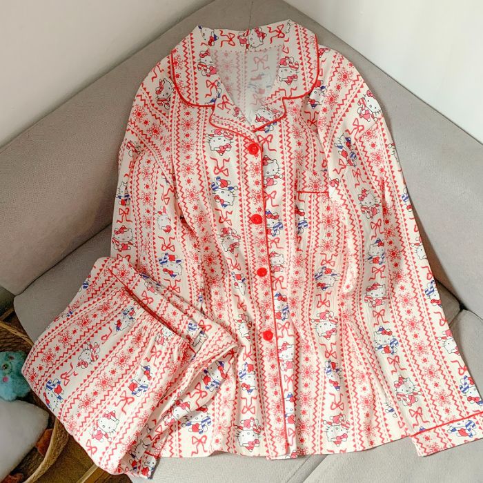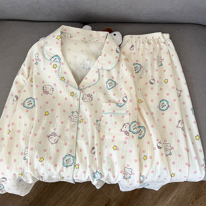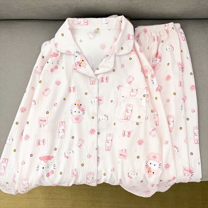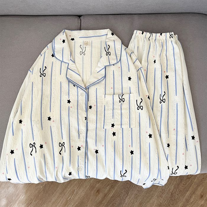 긴 소매 바지 플러스 사이즈 300kg 달콤한 바람 잠옷 여성의 봄과 가을 구름 면화 새로운 여성 홈 의류스토어 가기