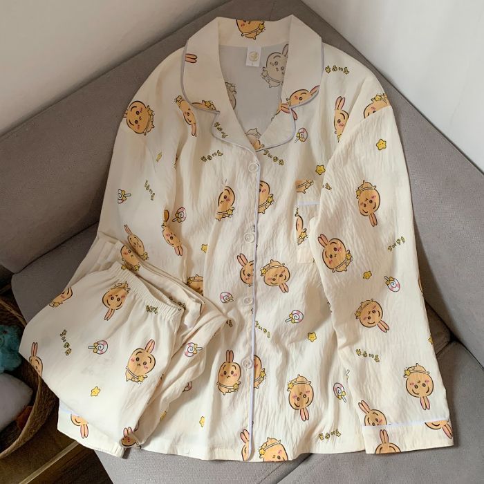 긴 소매 바지 플러스 사이즈 300kg 달콤한 바람 잠옷 여성의 봄과 가을 구름 면화 새로운 여성 홈 의류