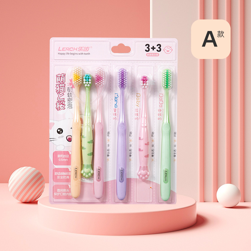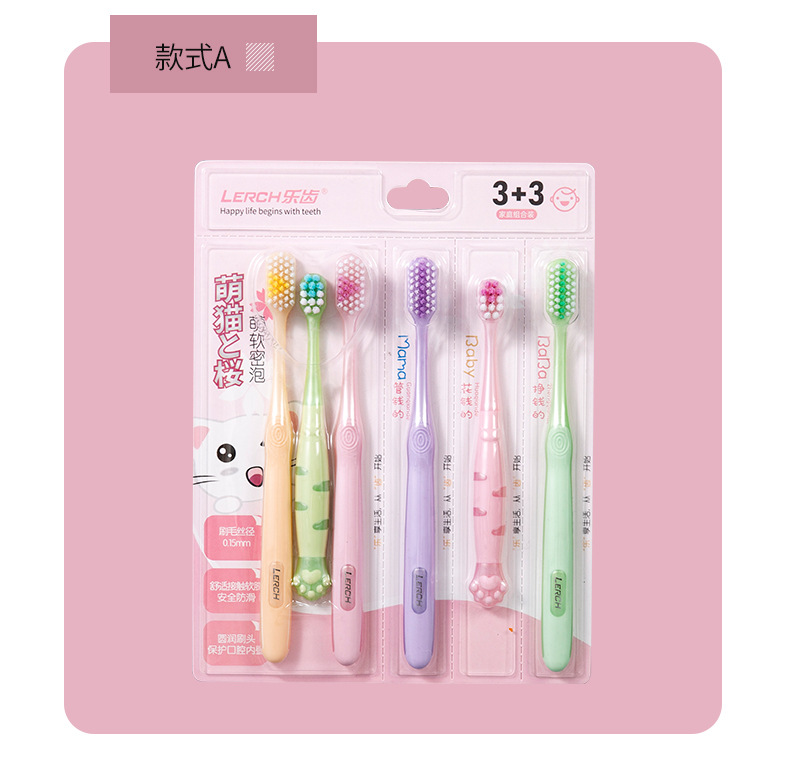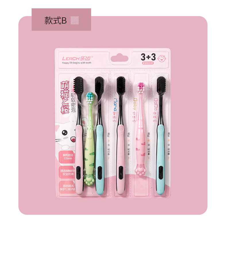 LERCH 부모 어린이 성인 칫솔 만화 부드러운 모피 고양이 발톱 칫솔 6 가족 제조 업체 재고 도매