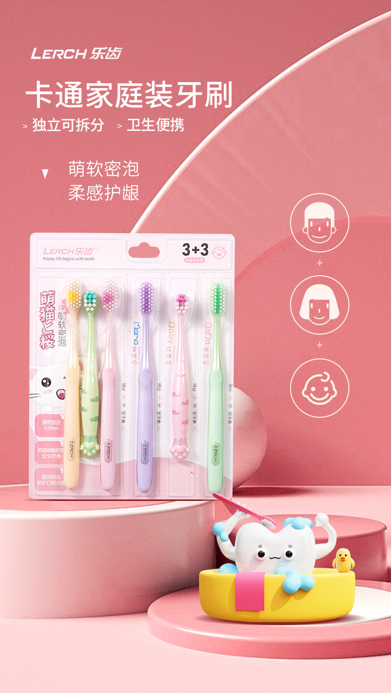 LERCH 부모 어린이 성인 칫솔 만화 부드러운 모피 고양이 발톱 칫솔 6 가족 제조 업체 재고 도매스토어 가기