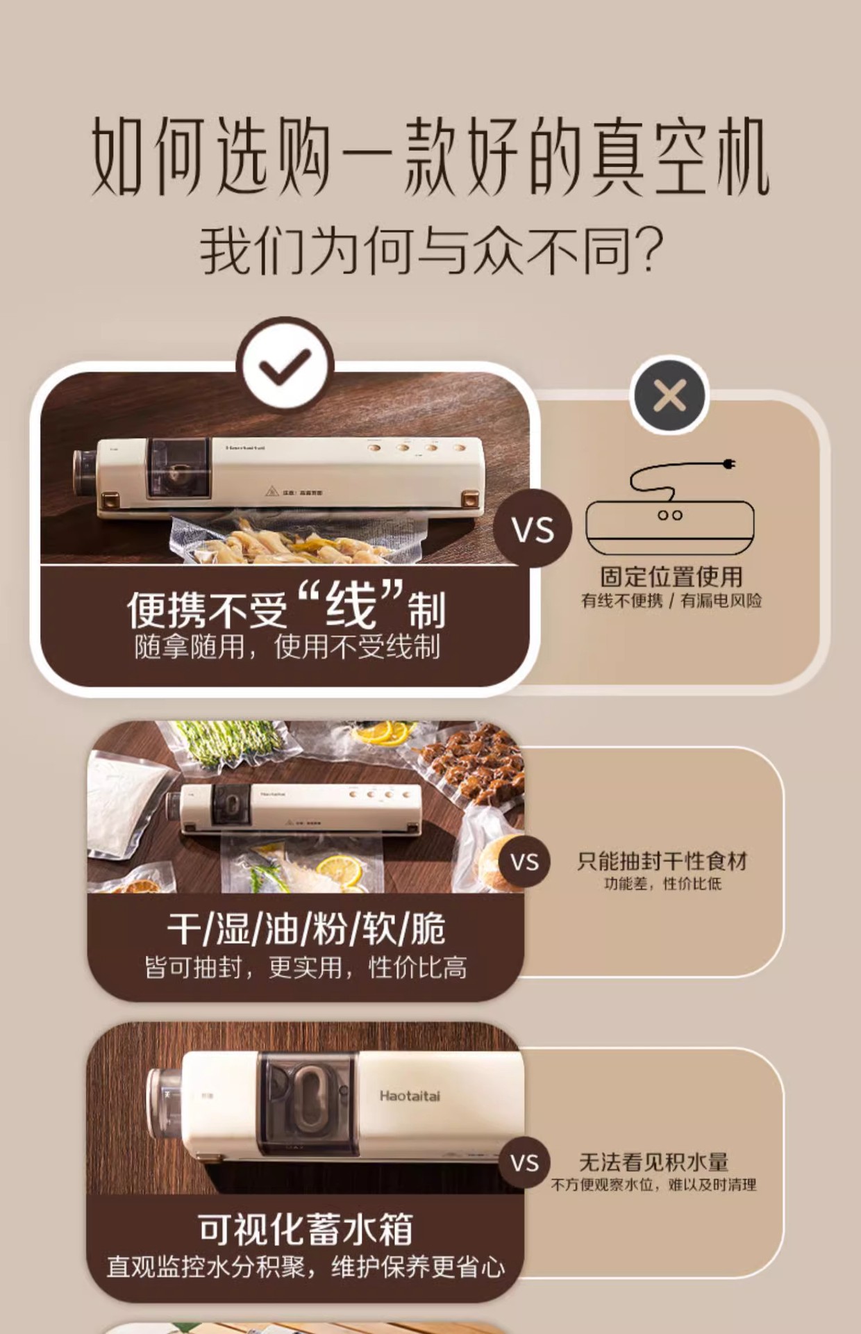 Haotaitai 무선 진공 밀봉 기계 충전식 휴대용 미니 휴대용 진공 보존 기계 포장 기계