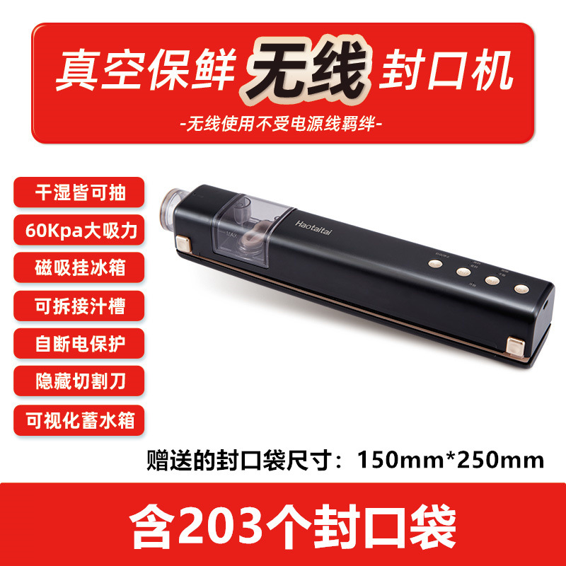 • 블랙 무선 진공 밀봉기(밀봉백 203개 포함)