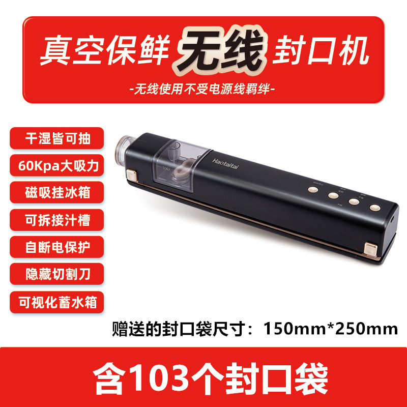 • 블랙 무선 진공 밀봉기(밀봉백 103개 포함)