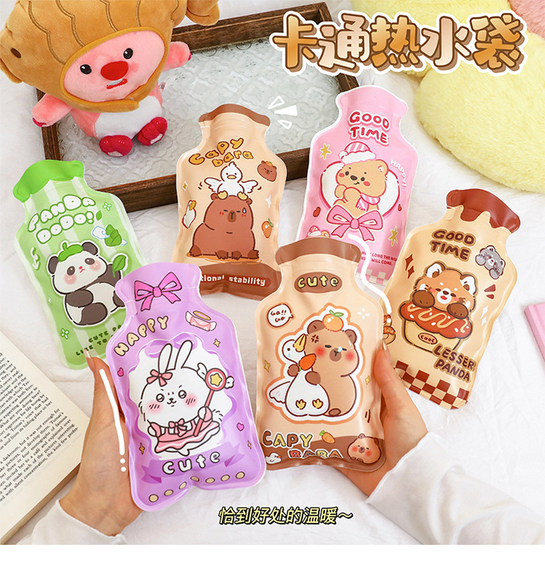 만화 뜨거운 물 가방 물 주입 두꺼운 폭발 방지 배 따뜻한 손과 발 소녀를위한 귀여운 봉제 따뜻한 아기스토어 가기