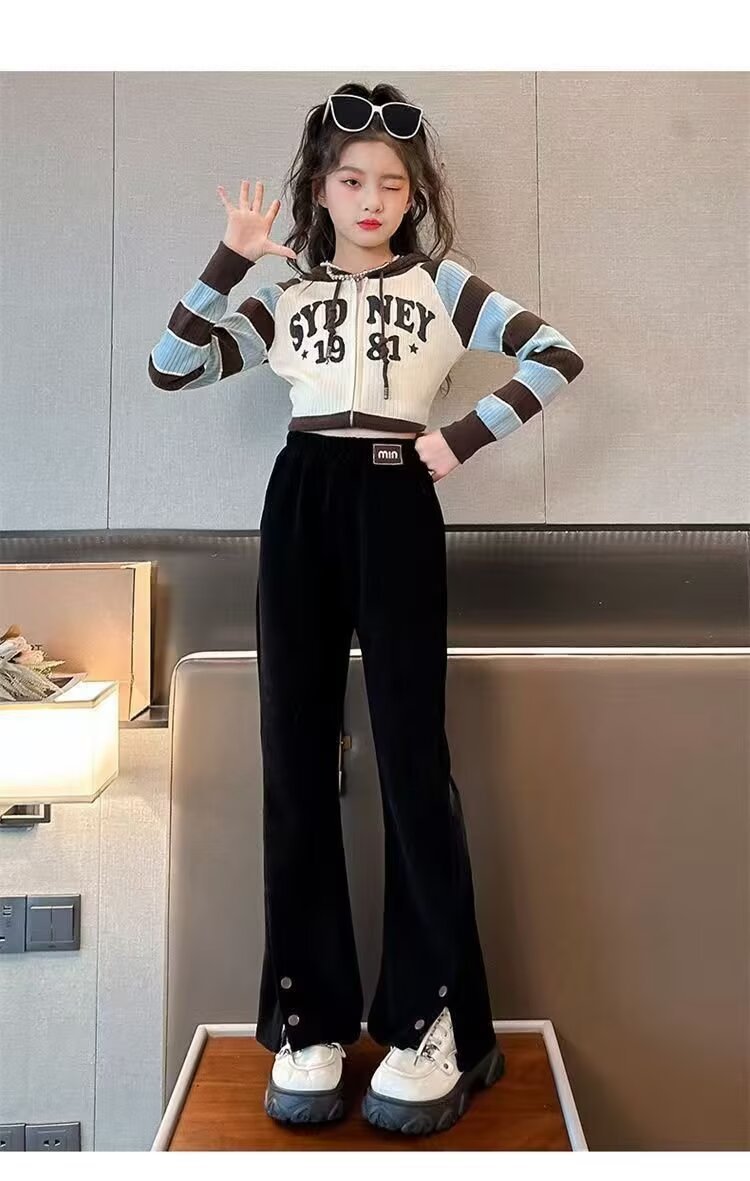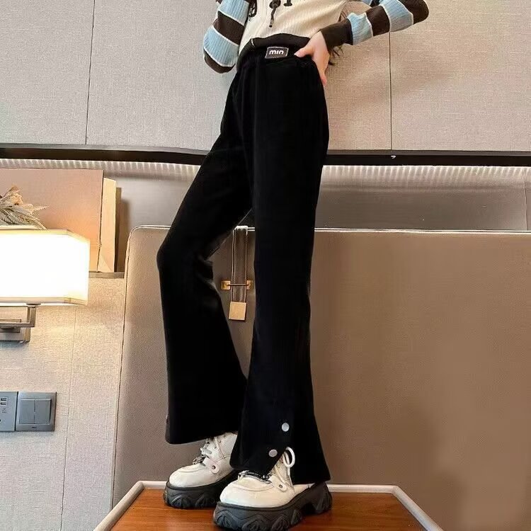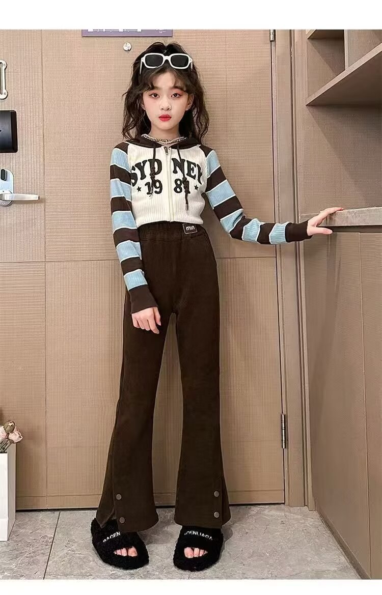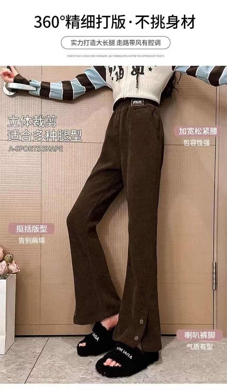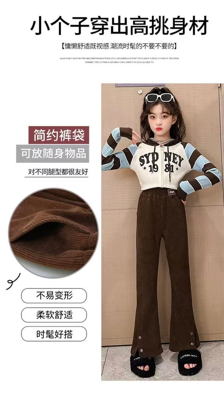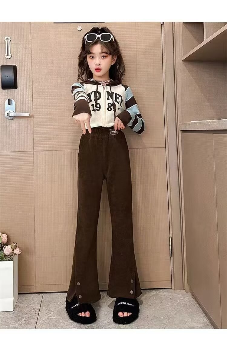 소녀 바지 가을 2024 새로운 스타일 플레어 바지 어린이 봄과 가을 중 큰 어린이 소녀 슬림 핏 바지