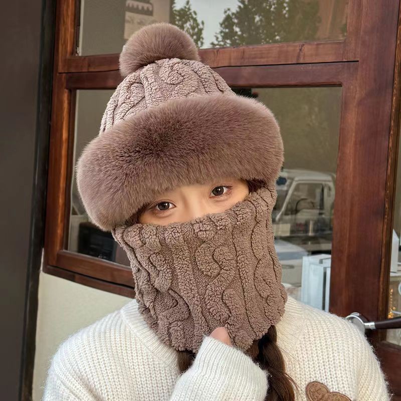여자의 새로운 겨울 자카드 모자와 목 기모 두꺼운 사이클링 방풍 전기 자동차 따뜻한 풀오버 모자