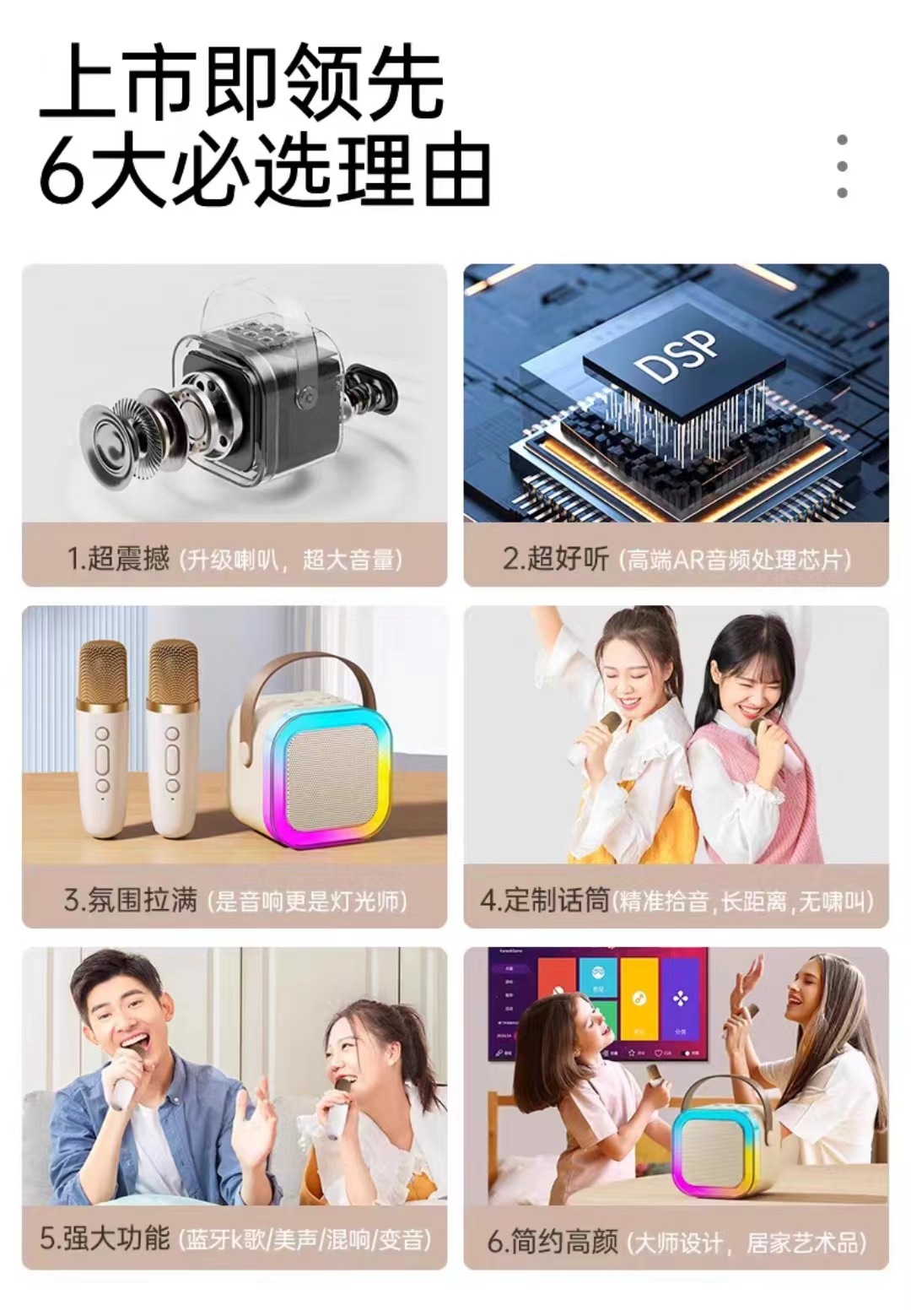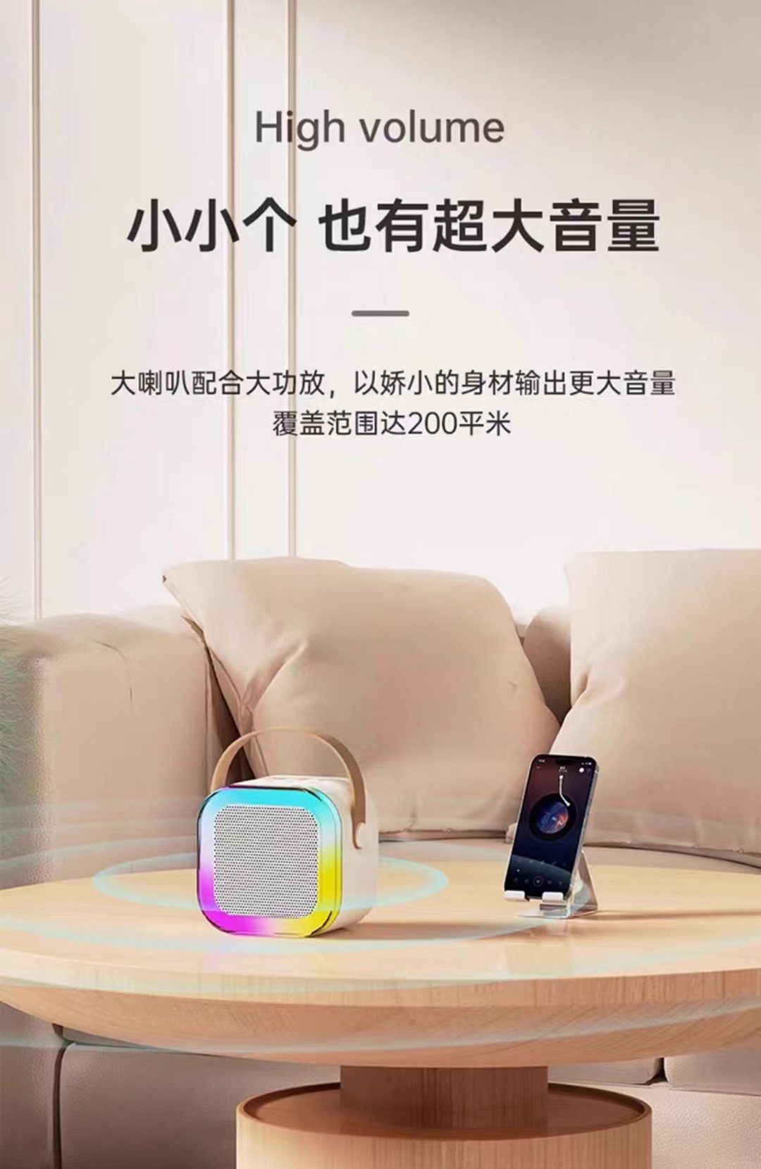 K12 블루투스 오디오 미니 휴대용 노래방 마이크 무선 블루투스 올인원 노래방 노래 가족 KTV