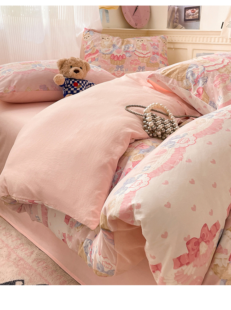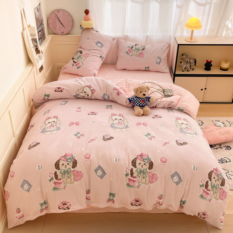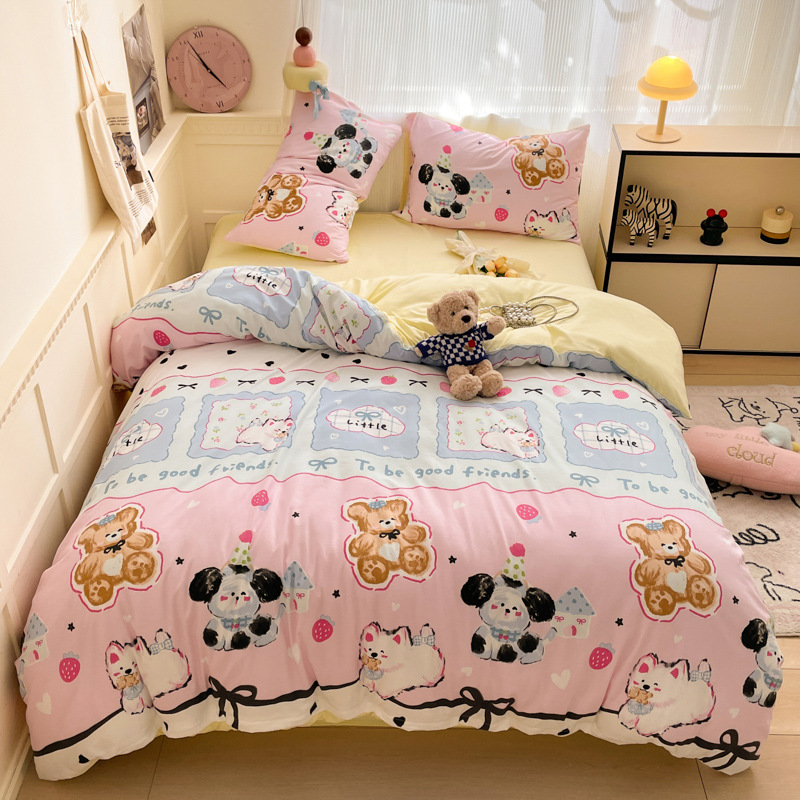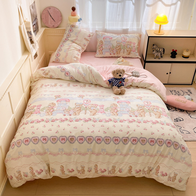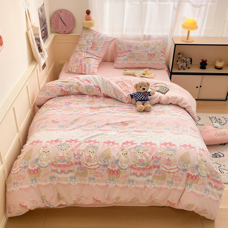 클래스 작은 신선한 로리타 스타일 세척 코튼 4 피스 세트 만화 인쇄 학생 기숙사 침대 모자 3 피스 세트