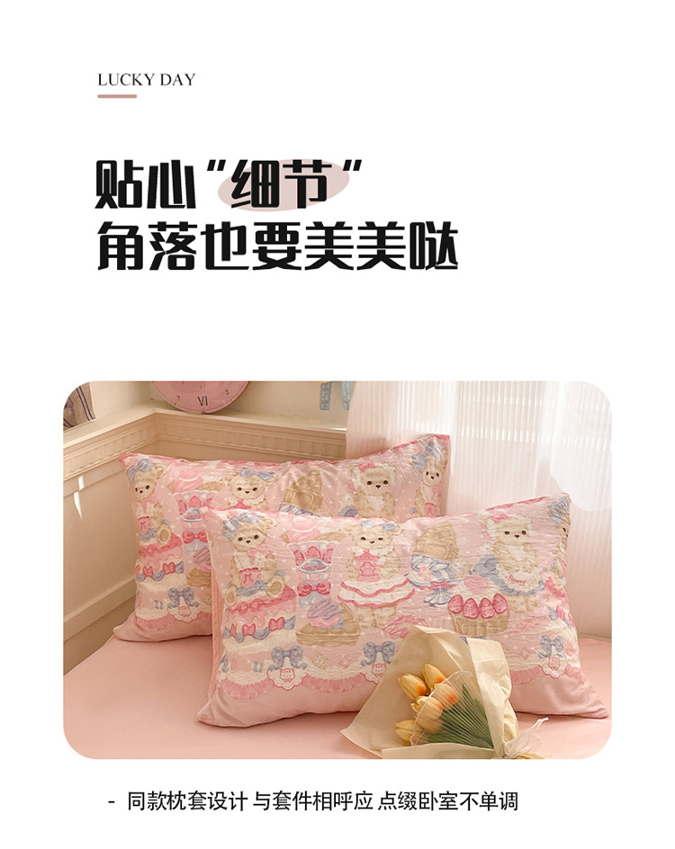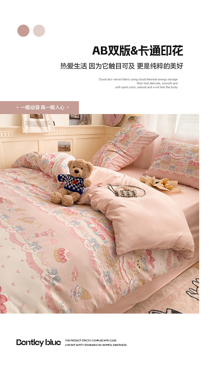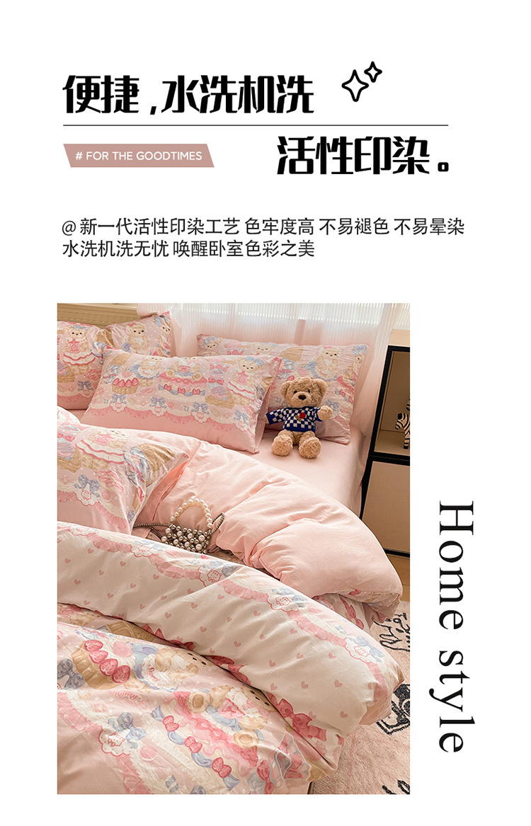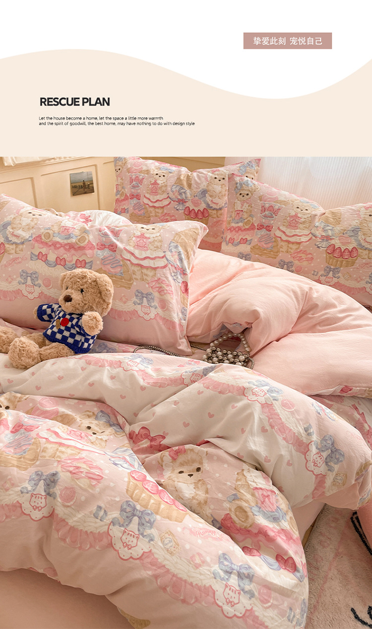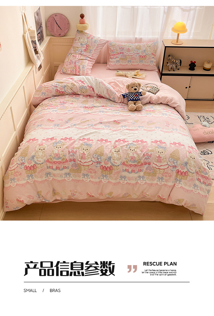 클래스 작은 신선한 로리타 스타일 세척 코튼 4 피스 세트 만화 인쇄 학생 기숙사 침대 모자 3 피스 세트스토어 가기