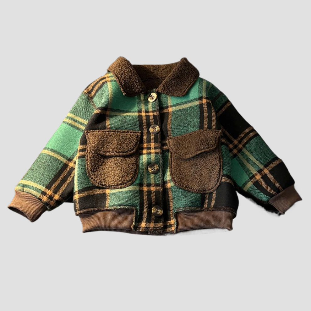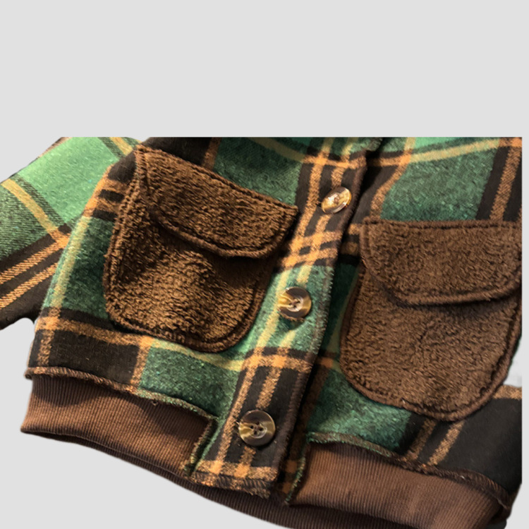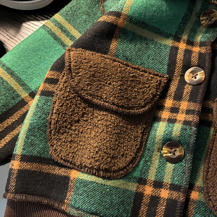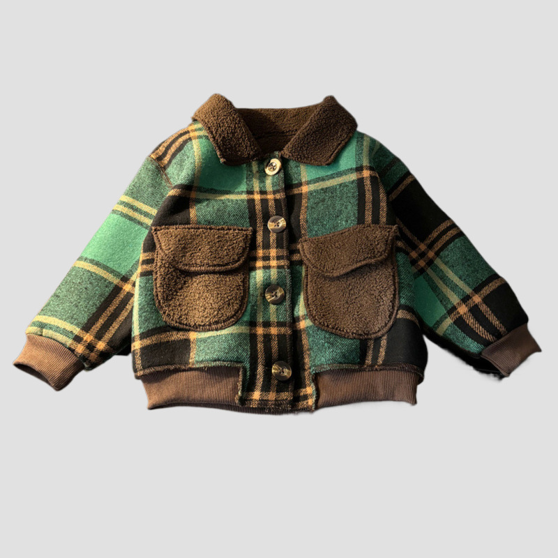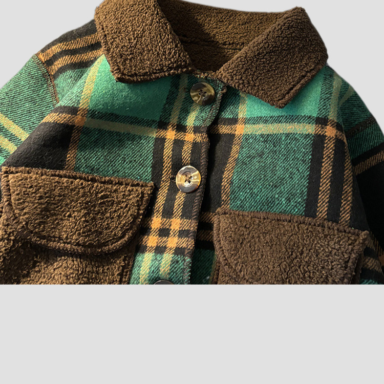 어린이 벨벳 재킷 가을과 겨울 새로운 녹색 격자 무늬 바보 자켓 소년과 소녀 한국 스타일 새로운 스타일 유행 재킷스토어 가기