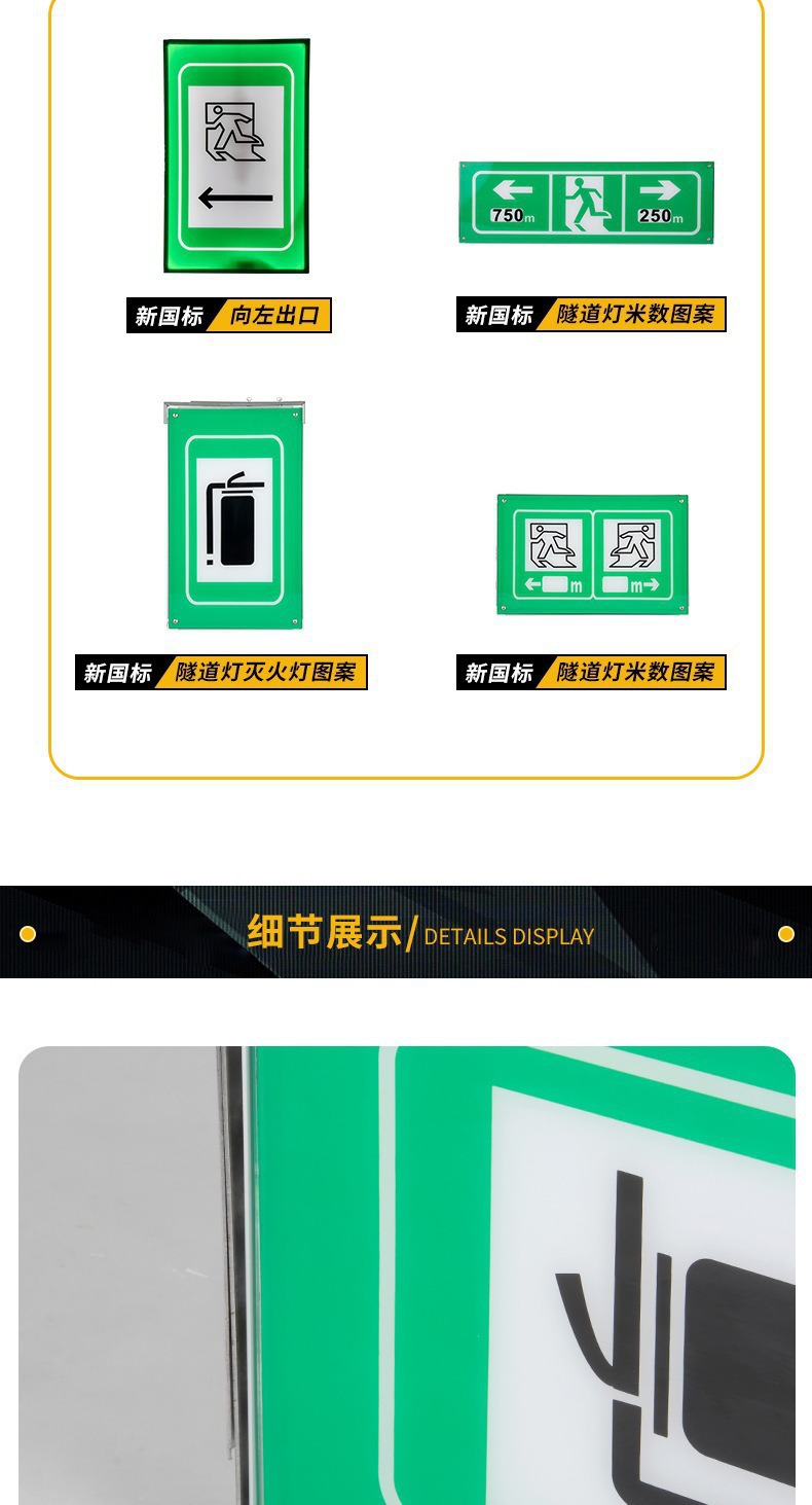 터널 전기 광학 표지판, 대피 화재 비상등, 교통 안전 표지판 안내, 표시등 경고