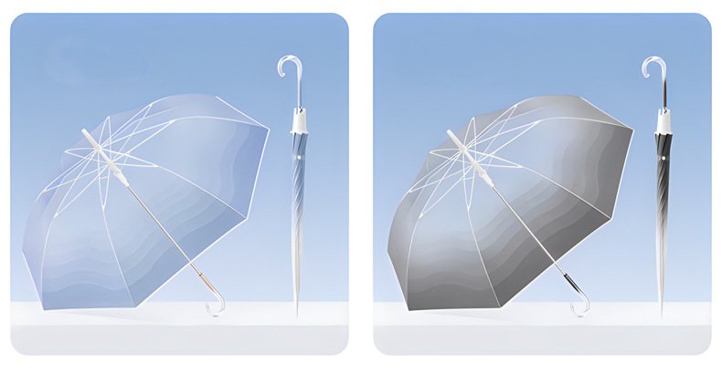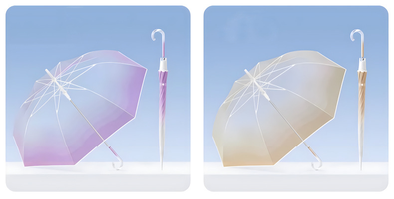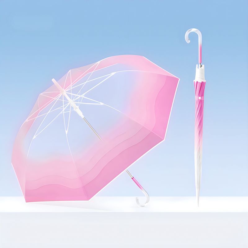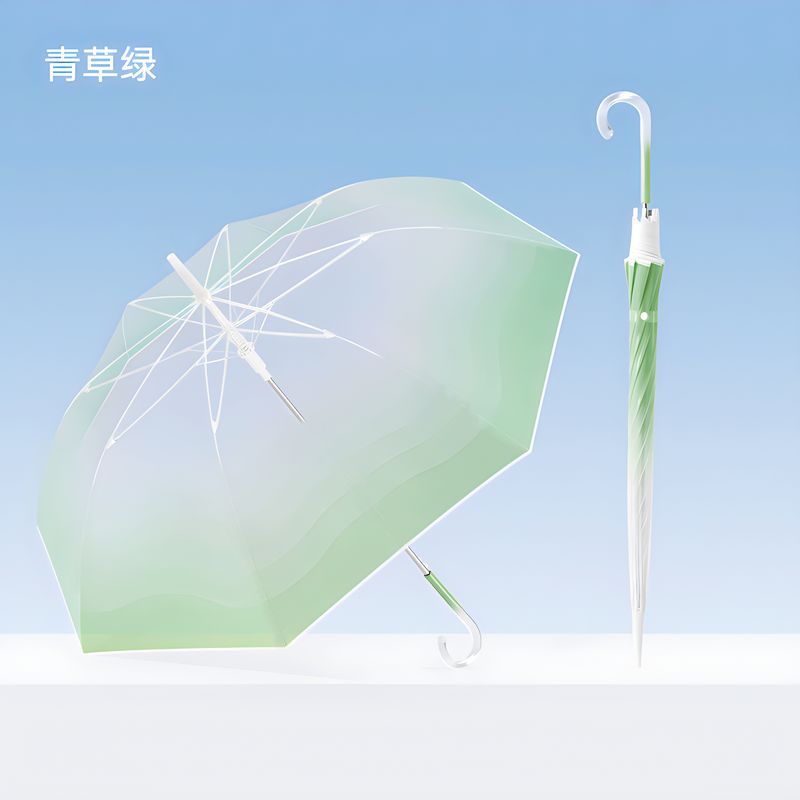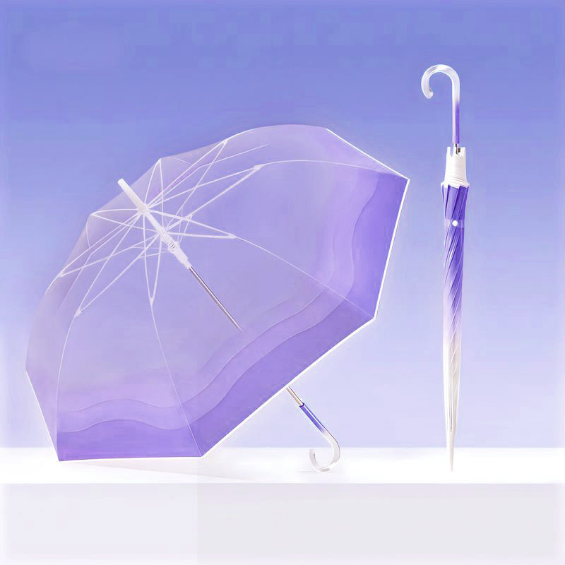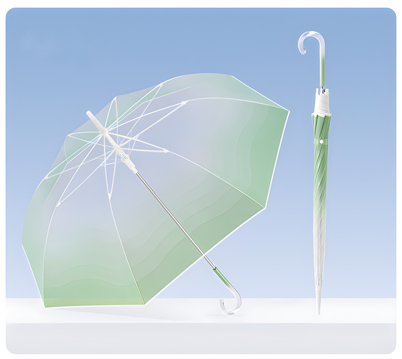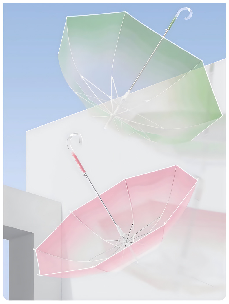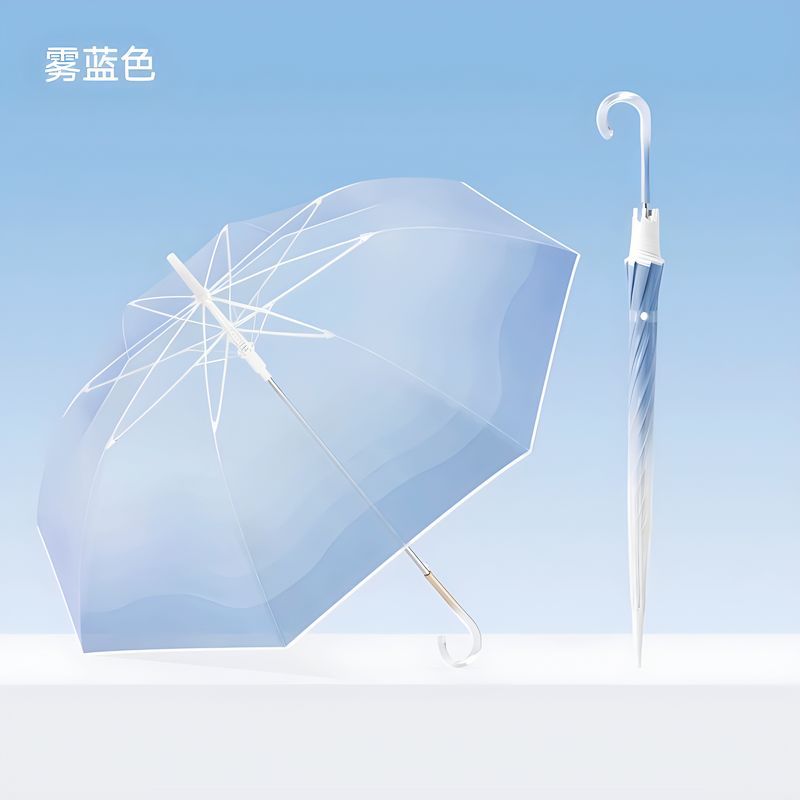 작고 깔끔한 투명 우산, 고급스러운 여성용 그라데이션 투명 우산, 예쁜 인기 자동 긴 손잡이 투명 우산