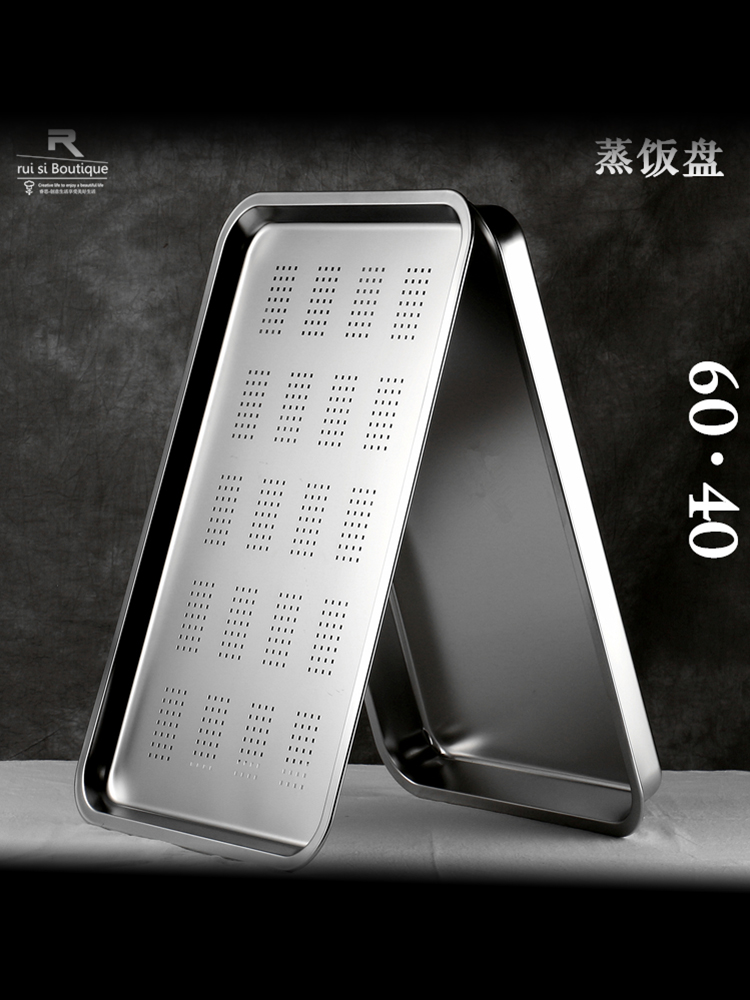 스테인레스 스틸 평평한 바닥 60*40 찐 쌀 접시 두꺼운 사각 판 구멍 드롭 오일 물 심화 분지 스팀 박스 티 트레이 왕진스토어 가기