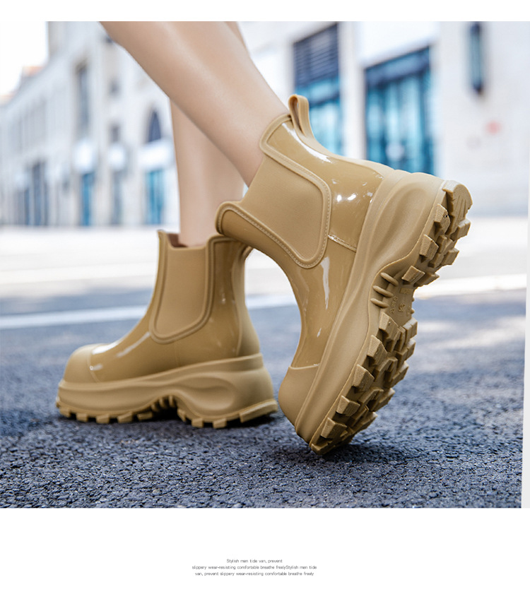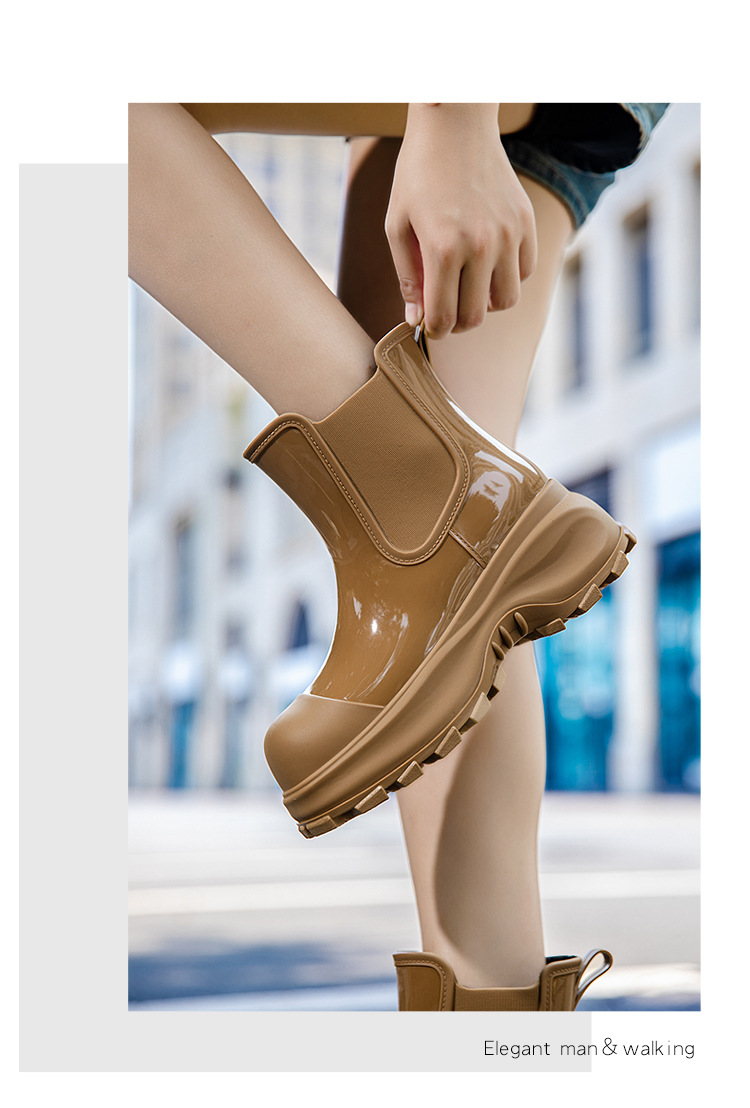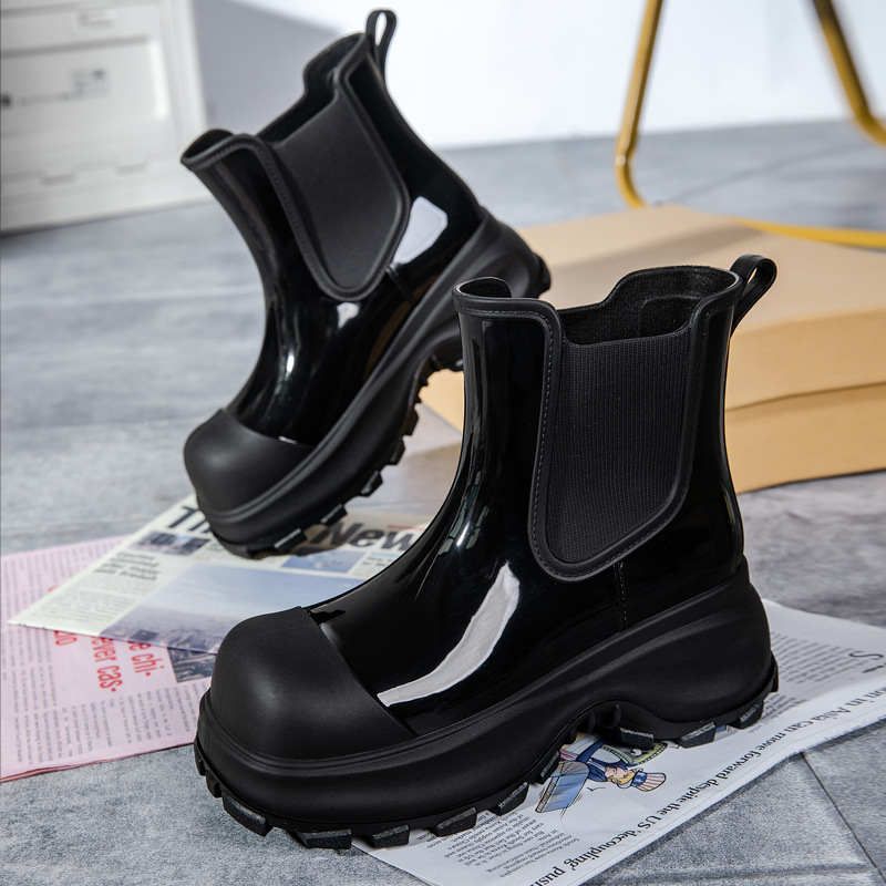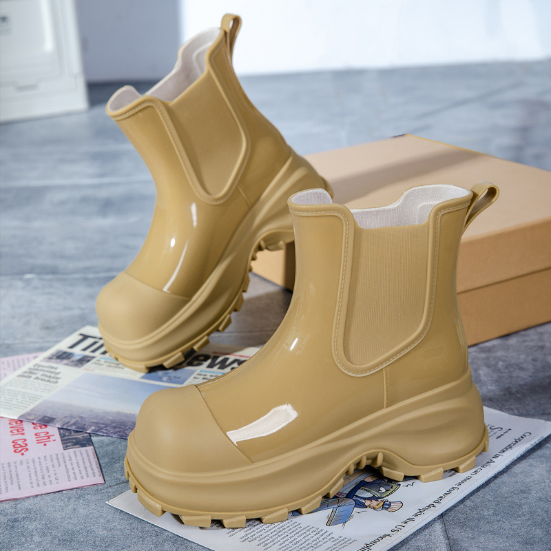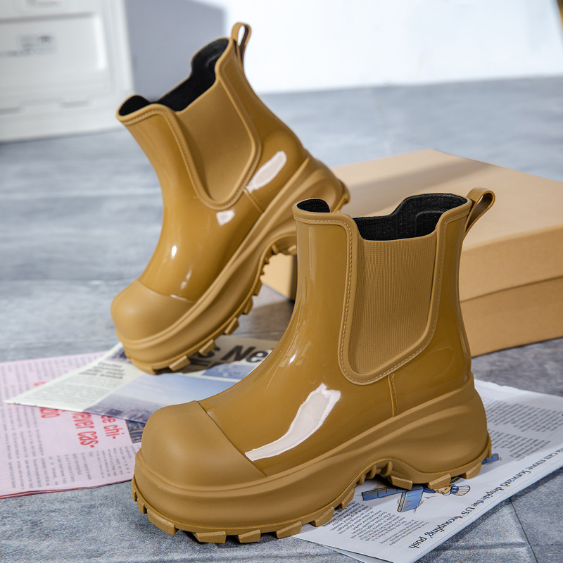 국경 두꺼운 밑창 여성 패션 겉옷 중간 배럴 레인 부츠 새 그물 레드 증가 물 신발 부드러운 밑창 방수 장화 도매