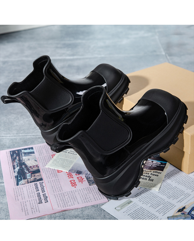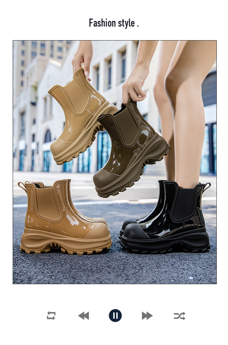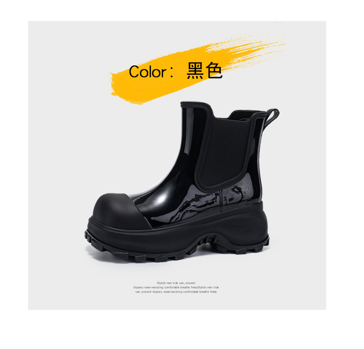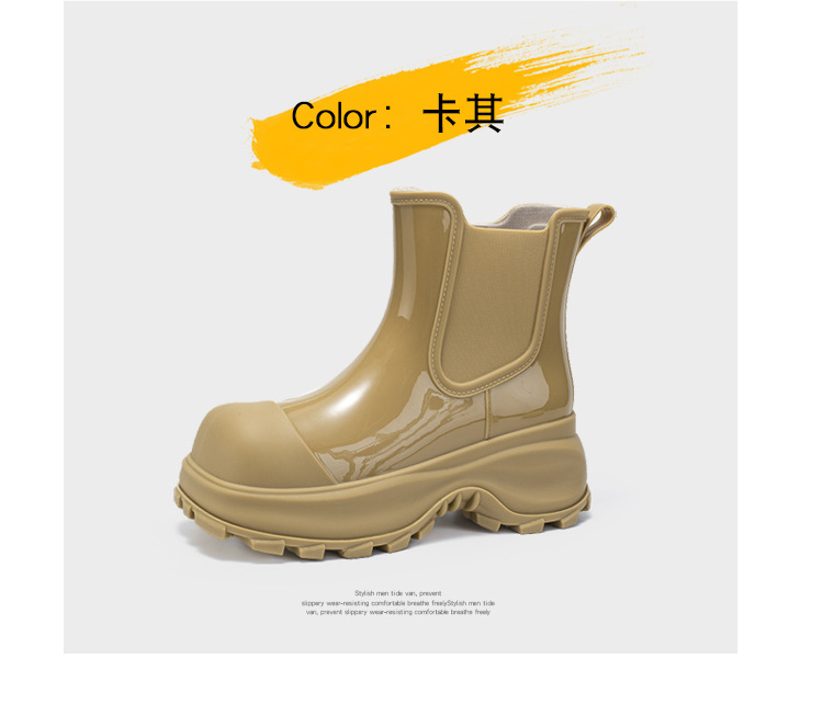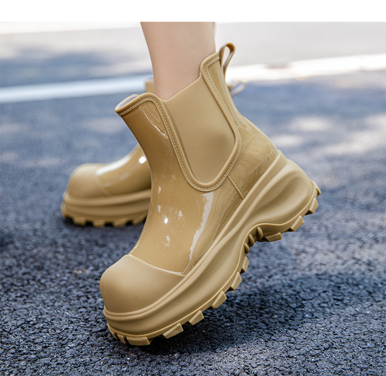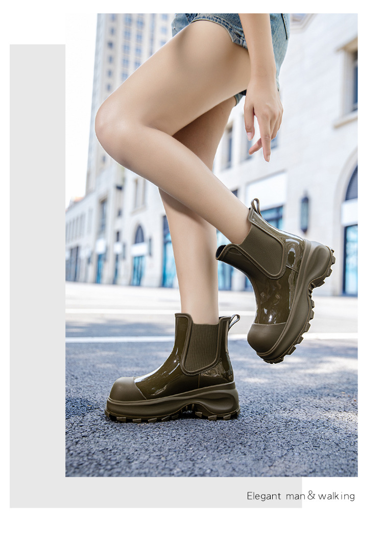 국경 두꺼운 밑창 여성 패션 겉옷 중간 배럴 레인 부츠 새 그물 레드 증가 물 신발 부드러운 밑창 방수 장화 도매