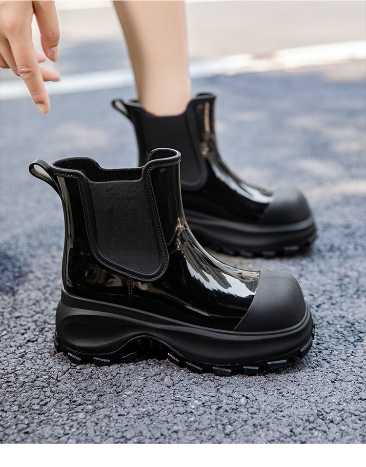 국경 두꺼운 밑창 여성 패션 겉옷 중간 배럴 레인 부츠 새 그물 레드 증가 물 신발 부드러운 밑창 방수 장화 도매스토어 가기