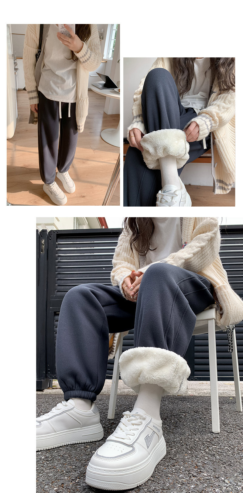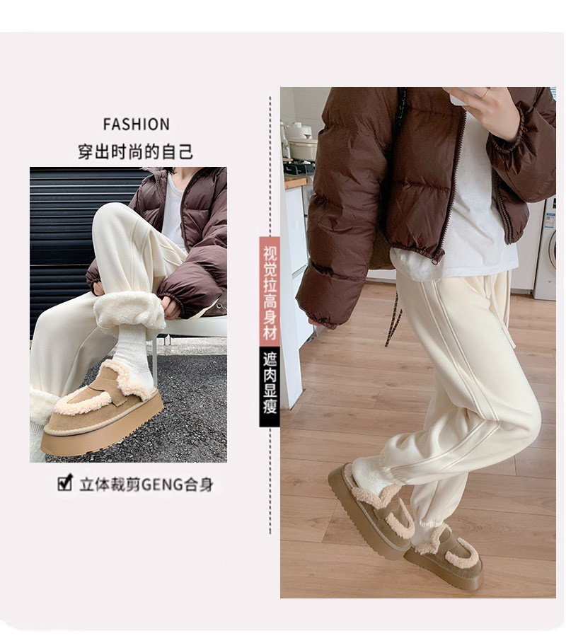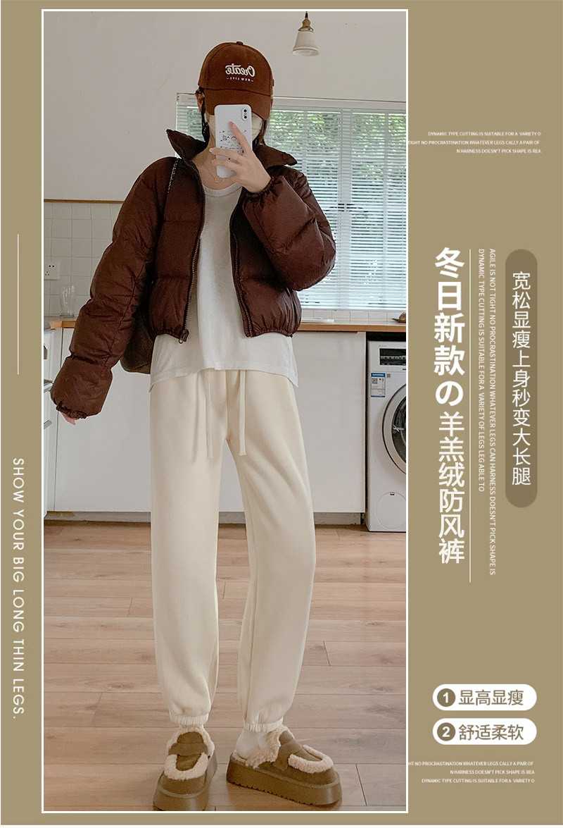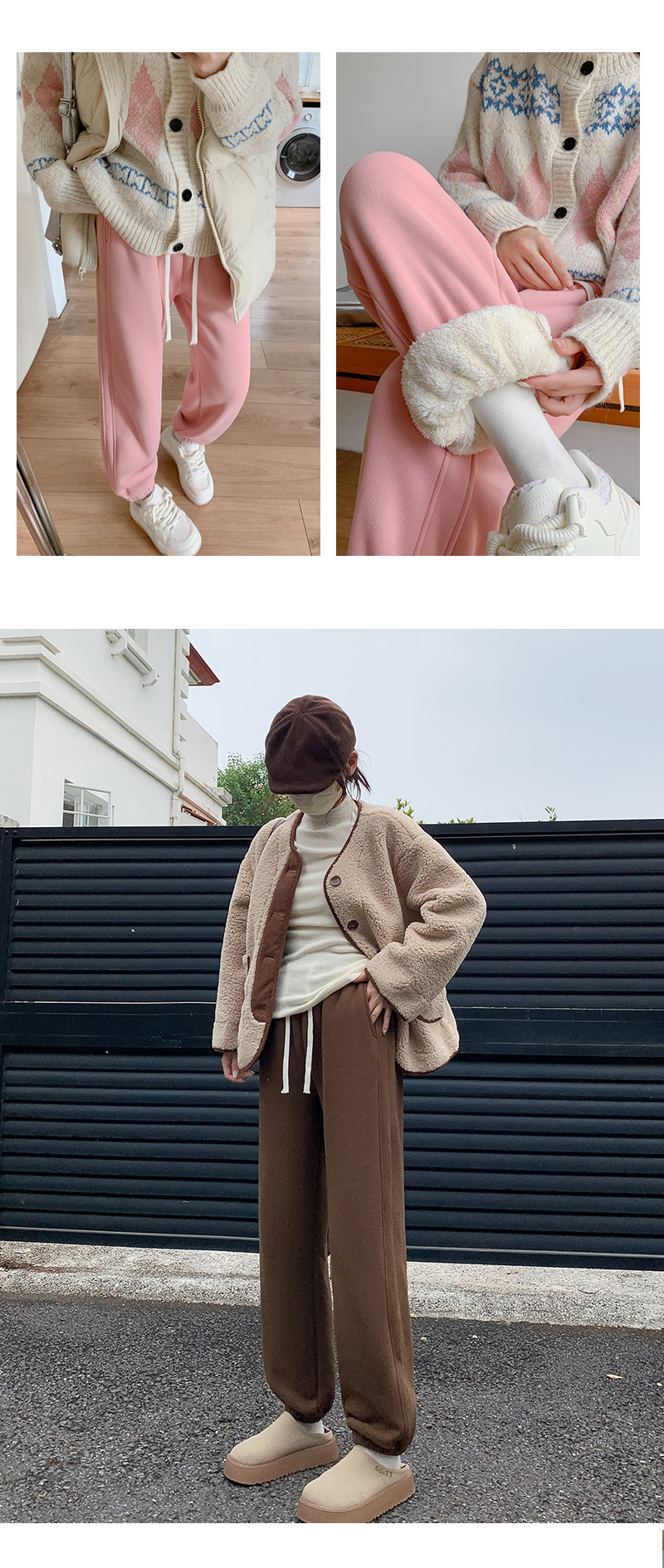 양고기 양털 방풍 바지 여성의 가을과 겨울 높은 허리 캐주얼 두꺼운 면 바지 넓은 다리 스트레이트 작은 기모 바지스토어 가기