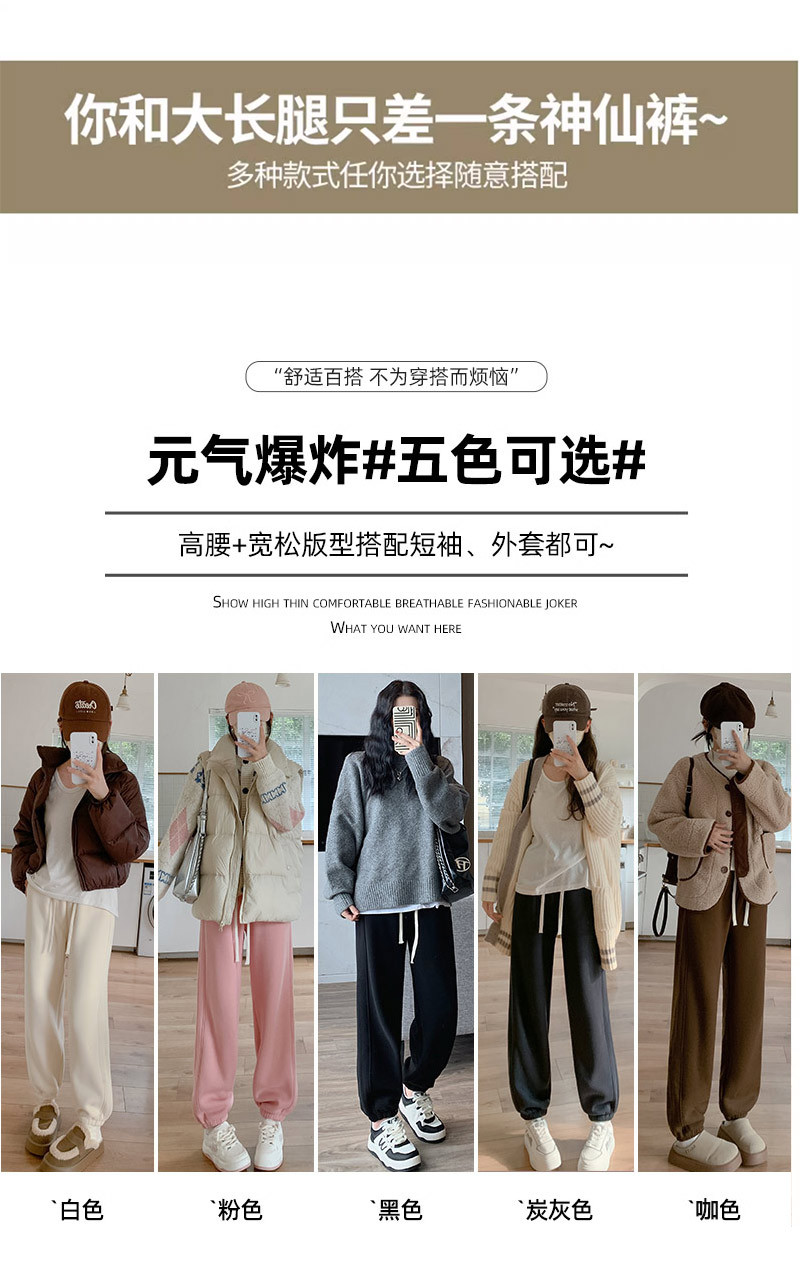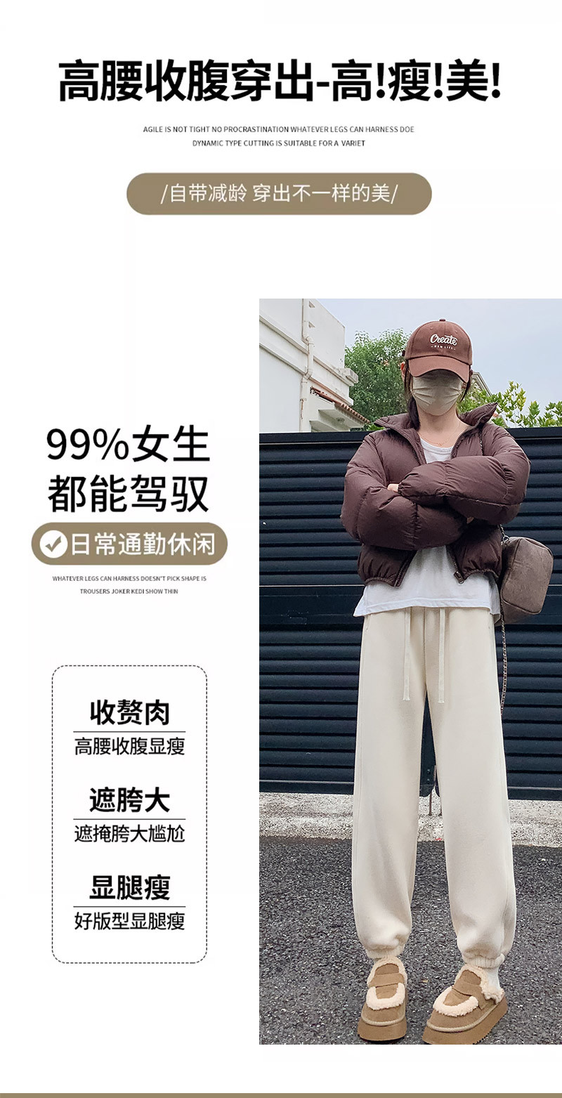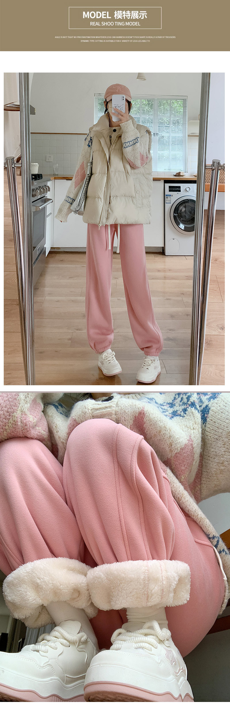 양고기 양털 방풍 바지 여성의 가을과 겨울 높은 허리 캐주얼 두꺼운 면 바지 넓은 다리 스트레이트 작은 기모 바지스토어 가기