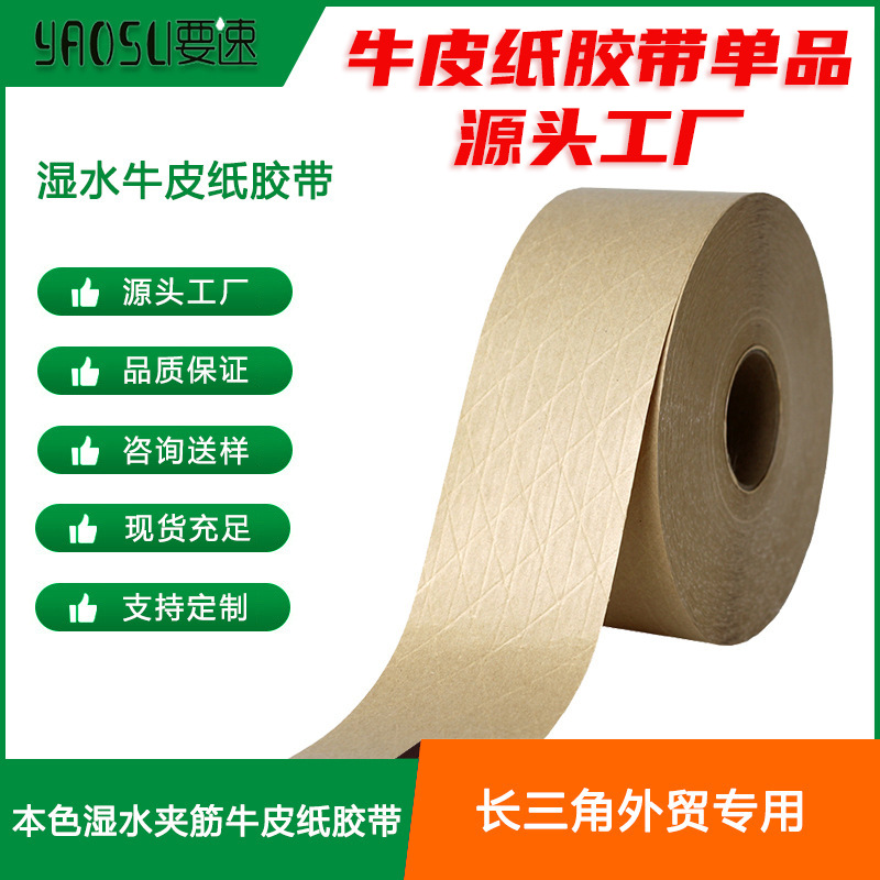 양쯔강 삼각주 젖은 물 강화 크래프트 종이 테이프 모든 목재 펄프 강화 젖은 물 크래프트 종이 테이프 맞춤형 공장 직접 공급