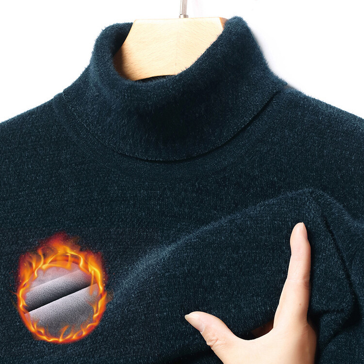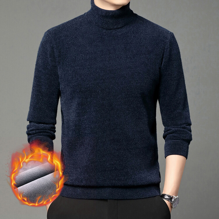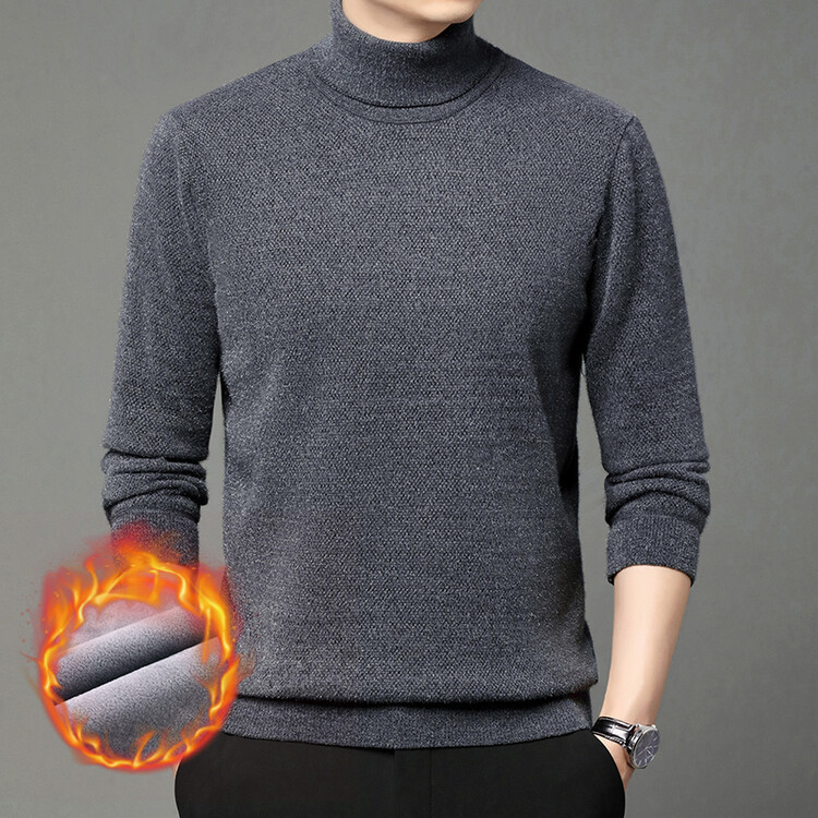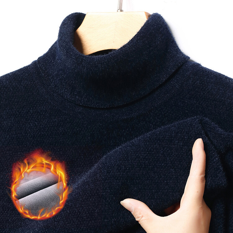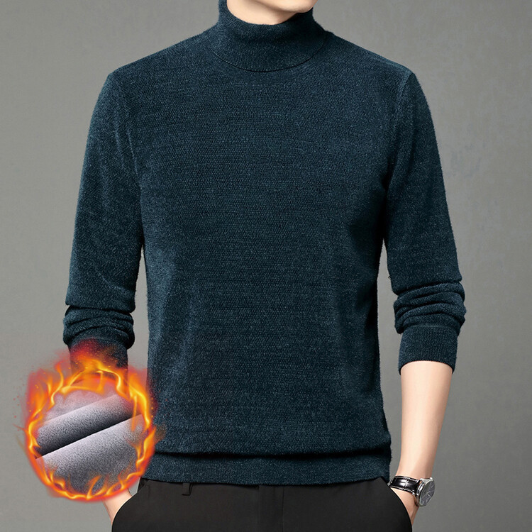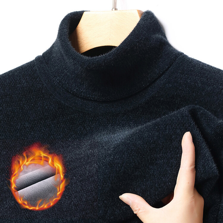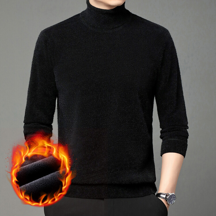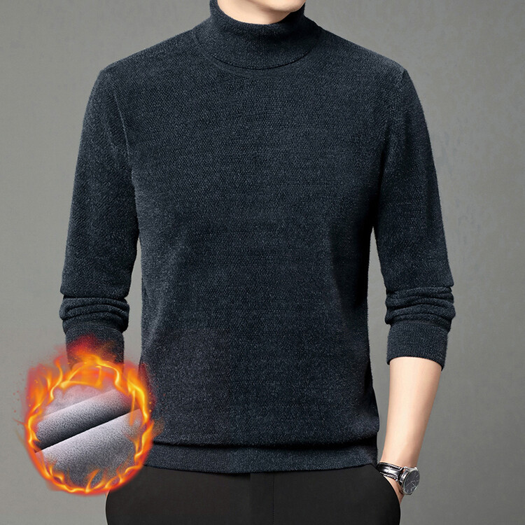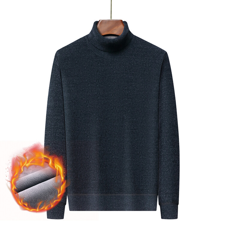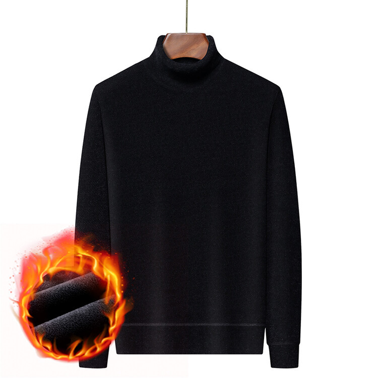 2024 년 겨울 새로운 남성 젊은 및 중년 세미 하이 크루 넥 페렛 벨벳 기모 패딩 따뜻한 스웨터 스웨터