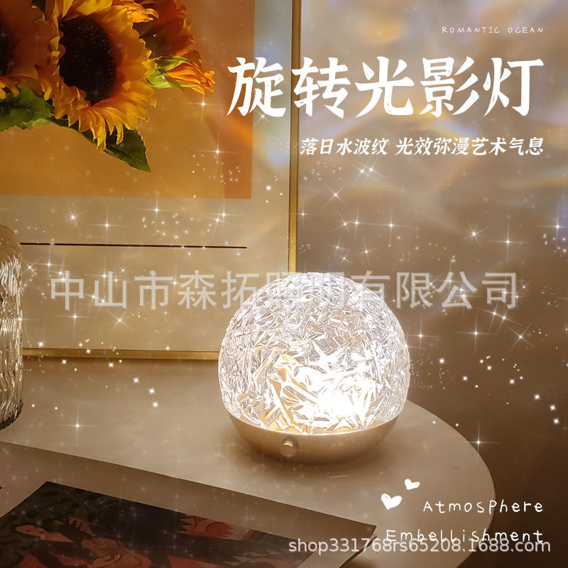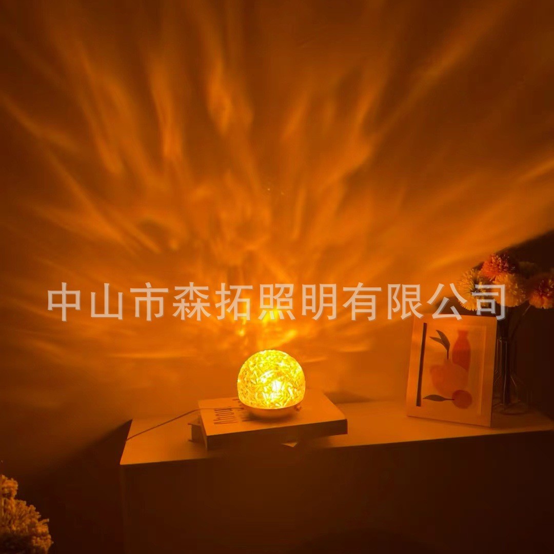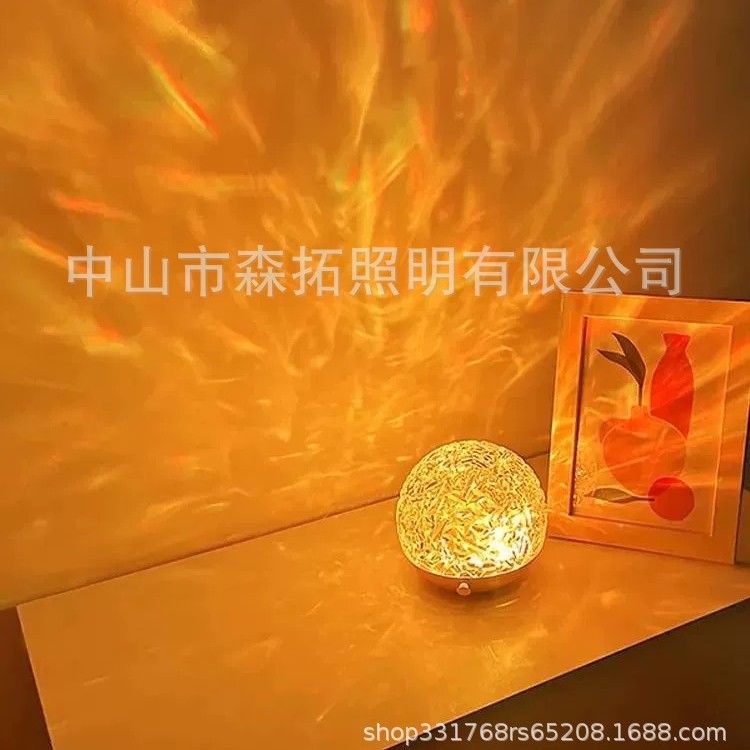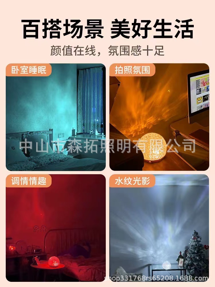 공장 직접 공급 고급 고급 회전 구형 물 파급 침실 창조적 인 프로젝션 낭만적 인 침대 옆 분위기 야간 조명스토어 가기