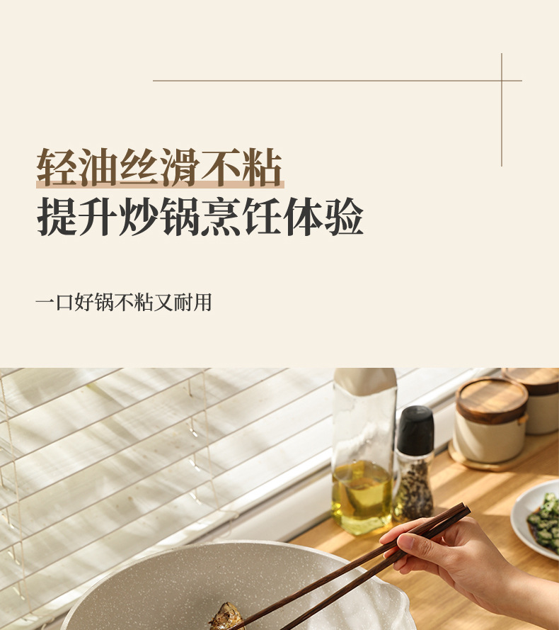 与市场上相似炒锅区别, 本厂拥有全新喷涂线, 升级内外水性不粘涂层, 相比市面上油性涂层, 更加耐用持久。