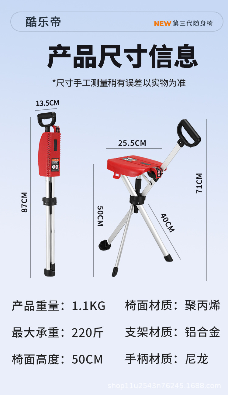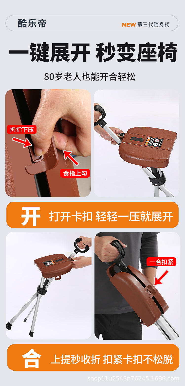 등산 야외 접이식 지팡이 의자 다기능 알루미늄 합금 미끄럼 방지 지팡이 의자 원 클릭 스위치스토어 가기