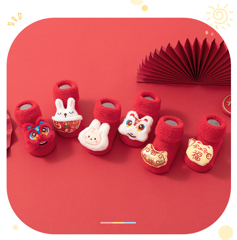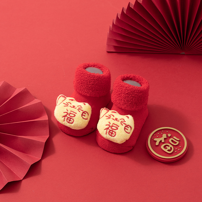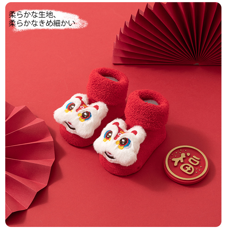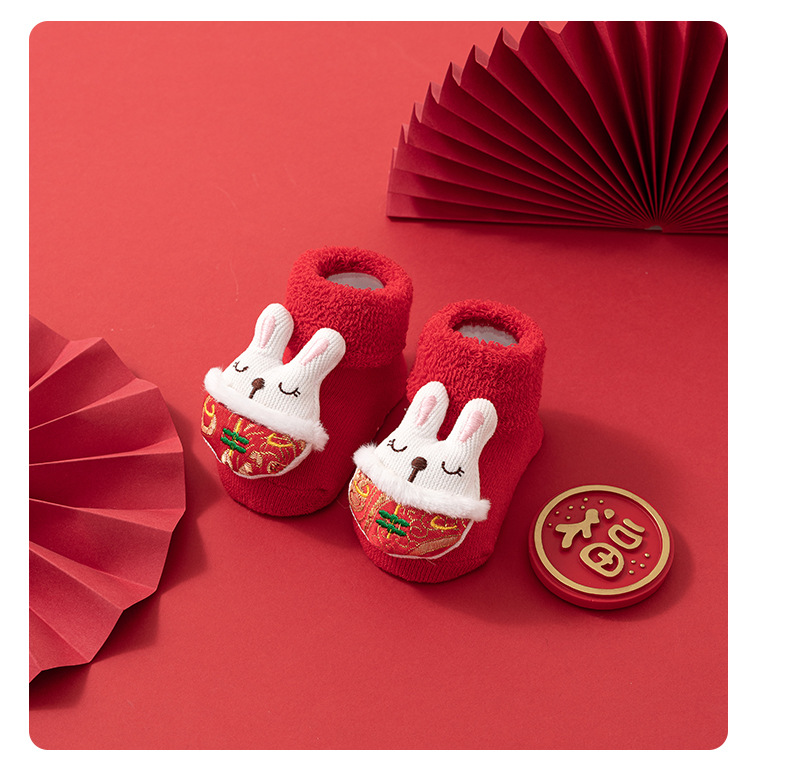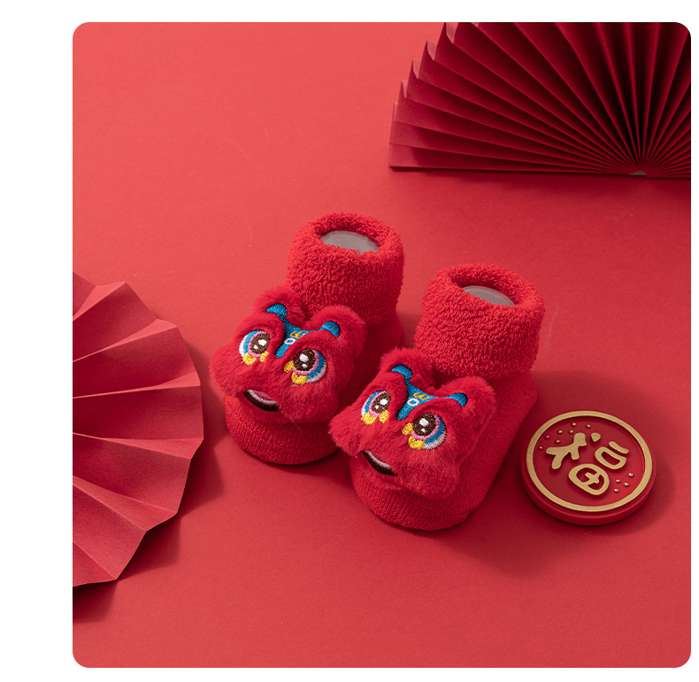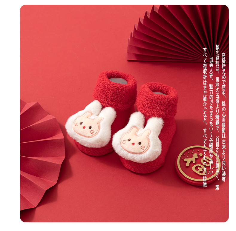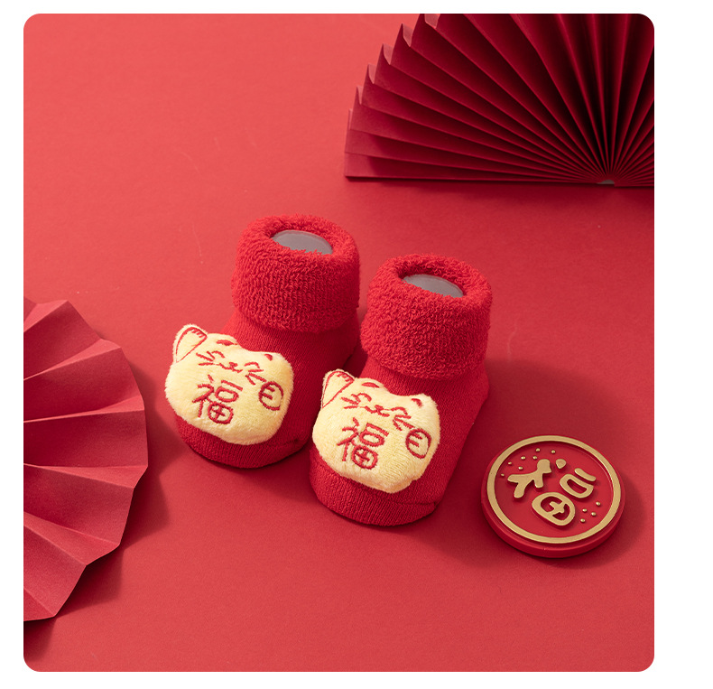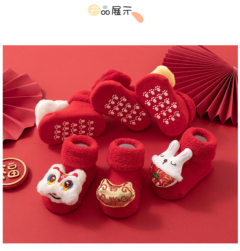신생아 가을과 겨울 기모 두꺼운 테리 양말 아기 클래스 면화 붉은 따뜻한 새해 바닥 양말 배치 3