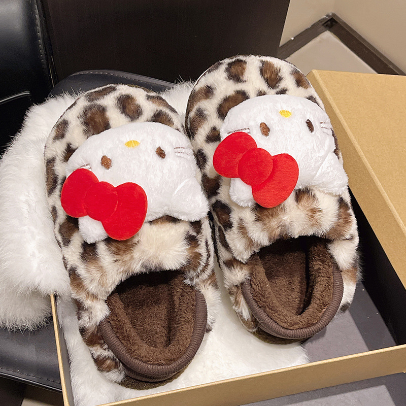 레오파드 무늬 새끼 고양이 ~ 높은 색 가치 밀레니엄 핫 소녀 스타일 복고풍 Baotou Mao Mao 슬리퍼 여성 홈 실내 따뜻한 면화 슬리퍼