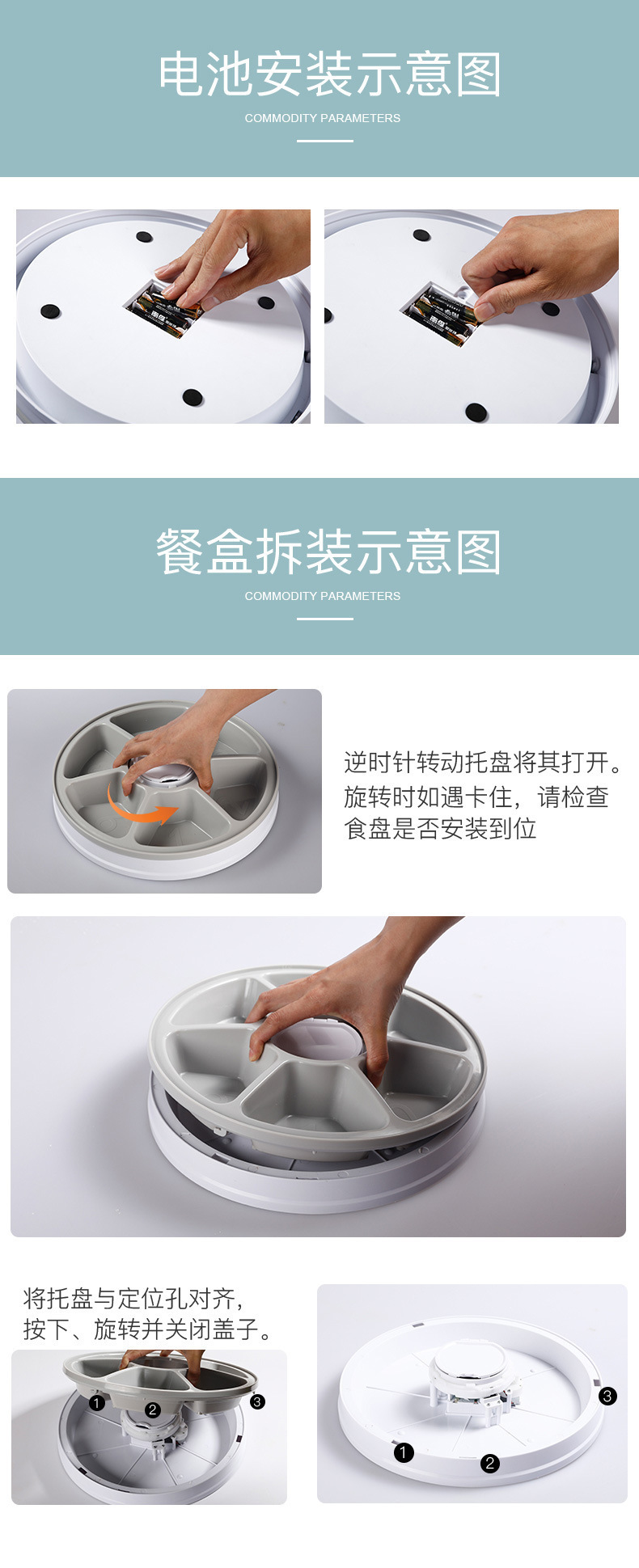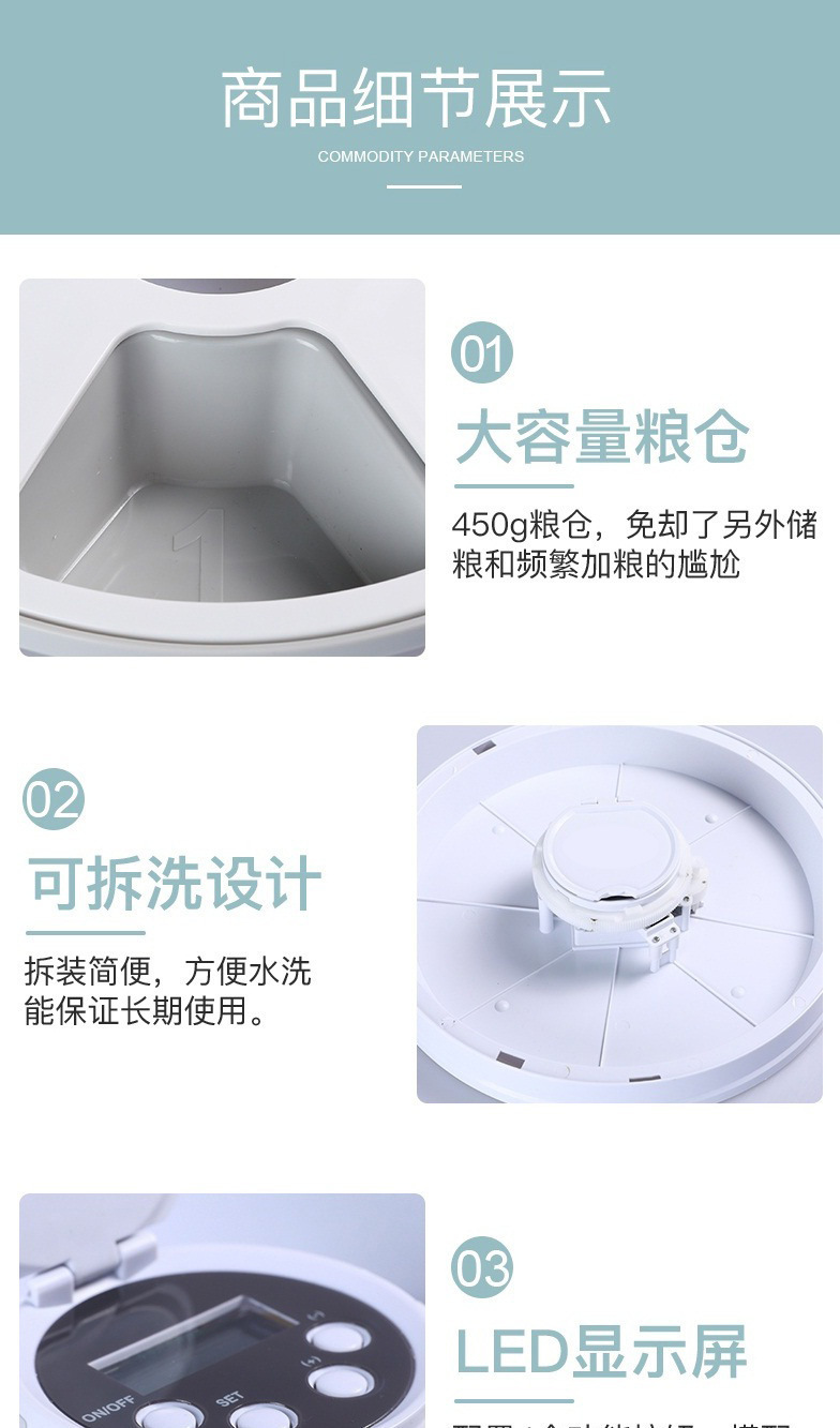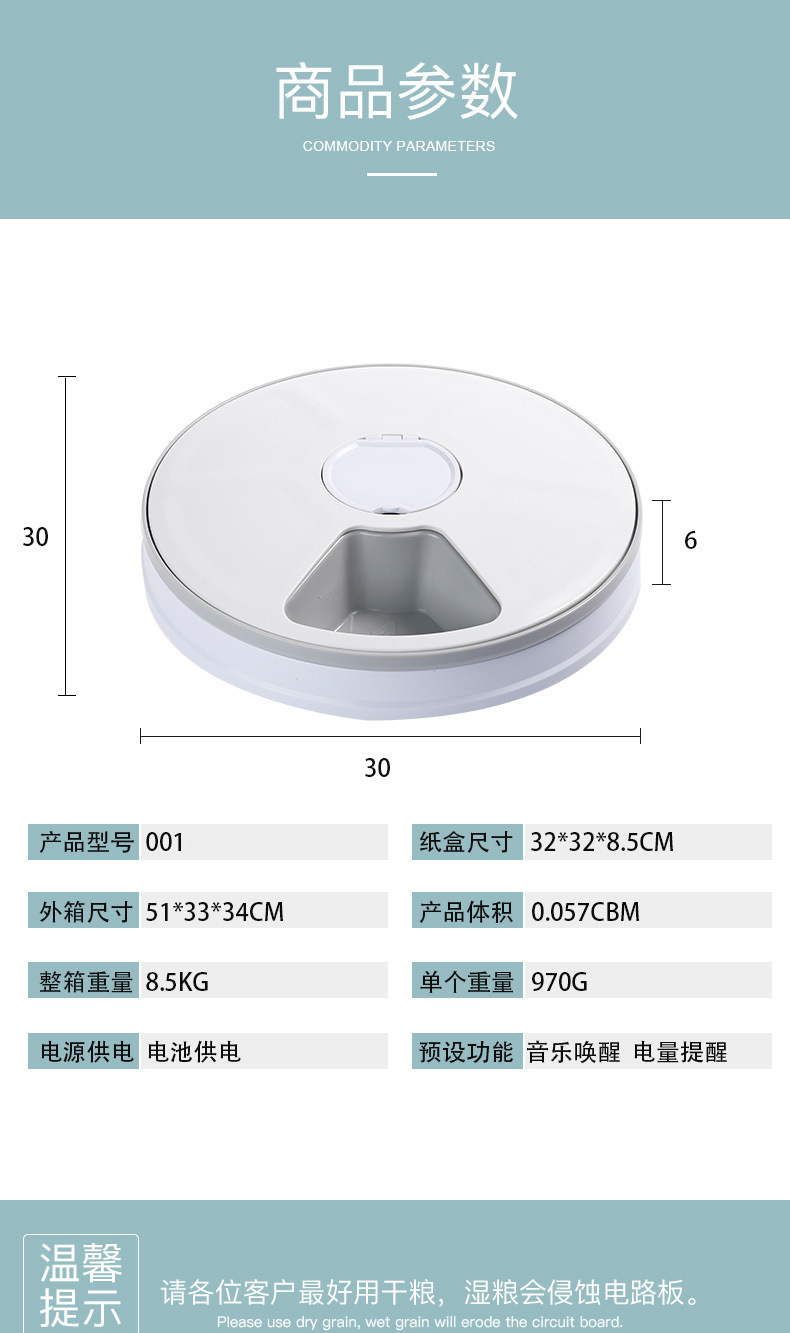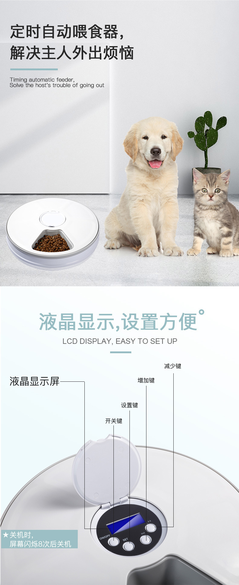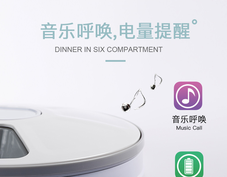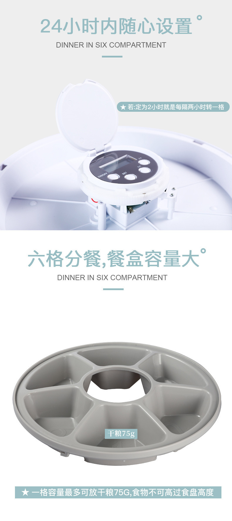 6칸 대용량 자동 급식기, 애완동물 스마트 자동 급식기, 음악 알림, 로고 없음, 강아지 사료