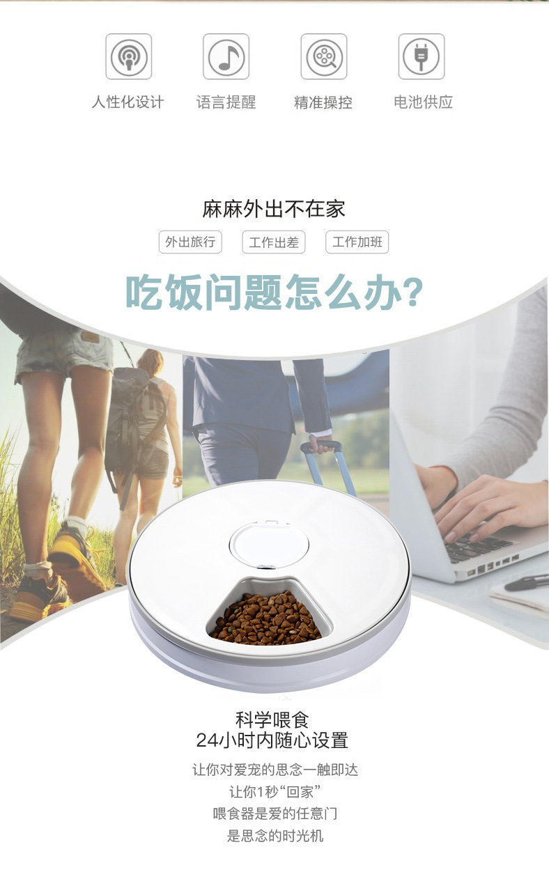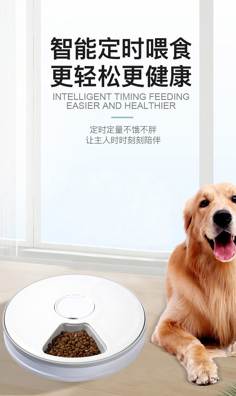 6칸 대용량 자동 급식기, 애완동물 스마트 자동 급식기, 음악 알림, 로고 없음, 강아지 사료스토어 가기