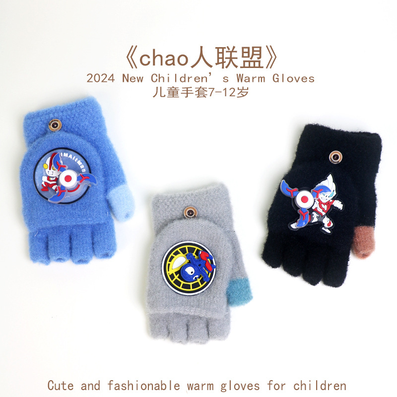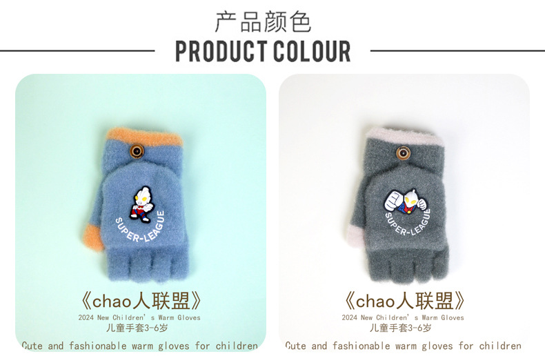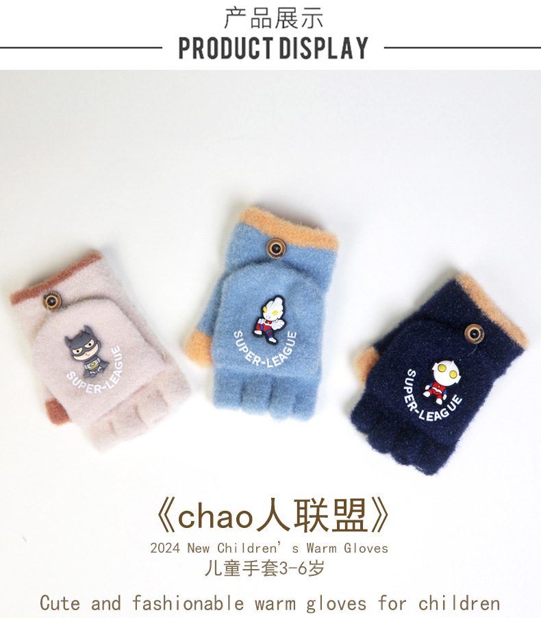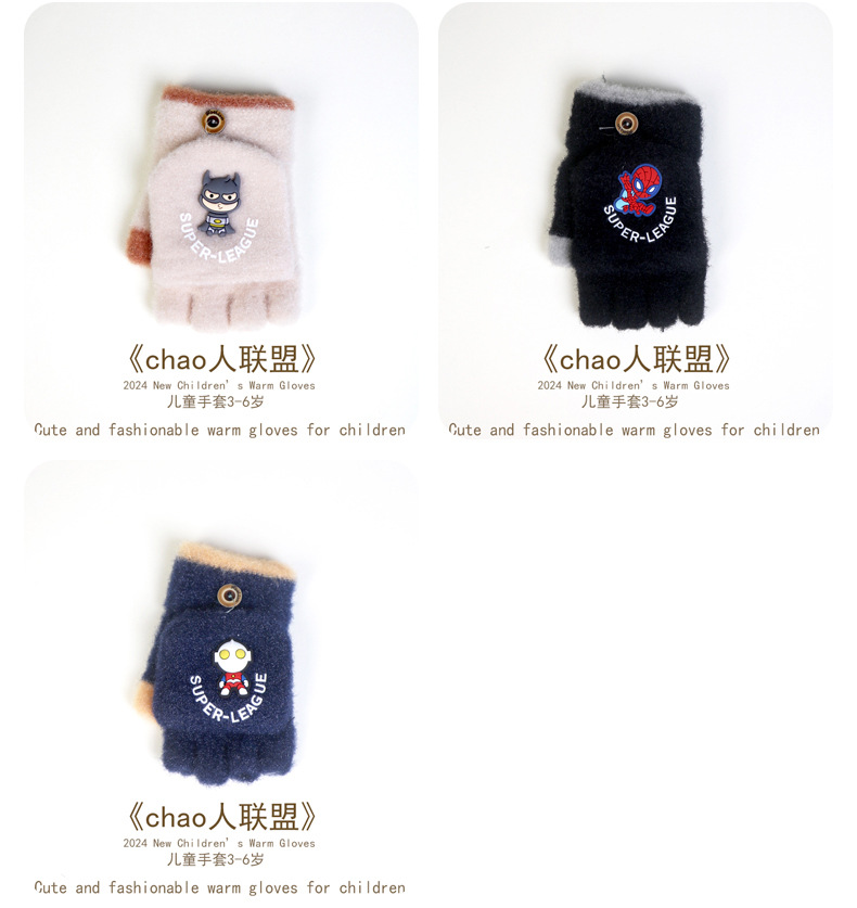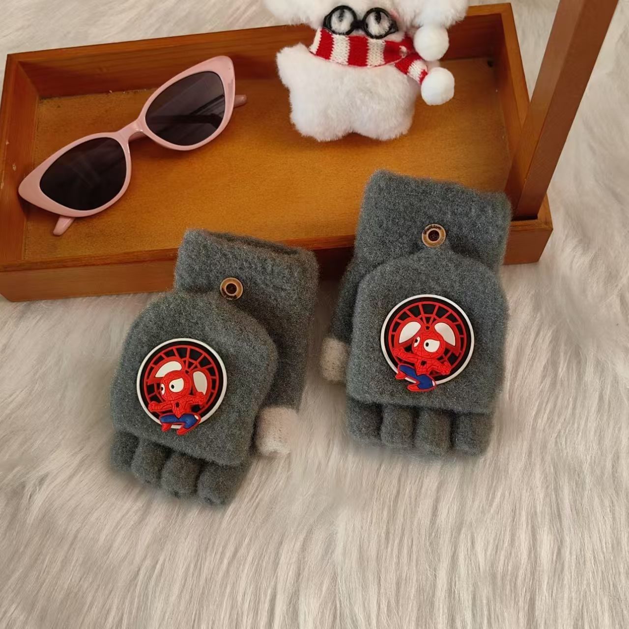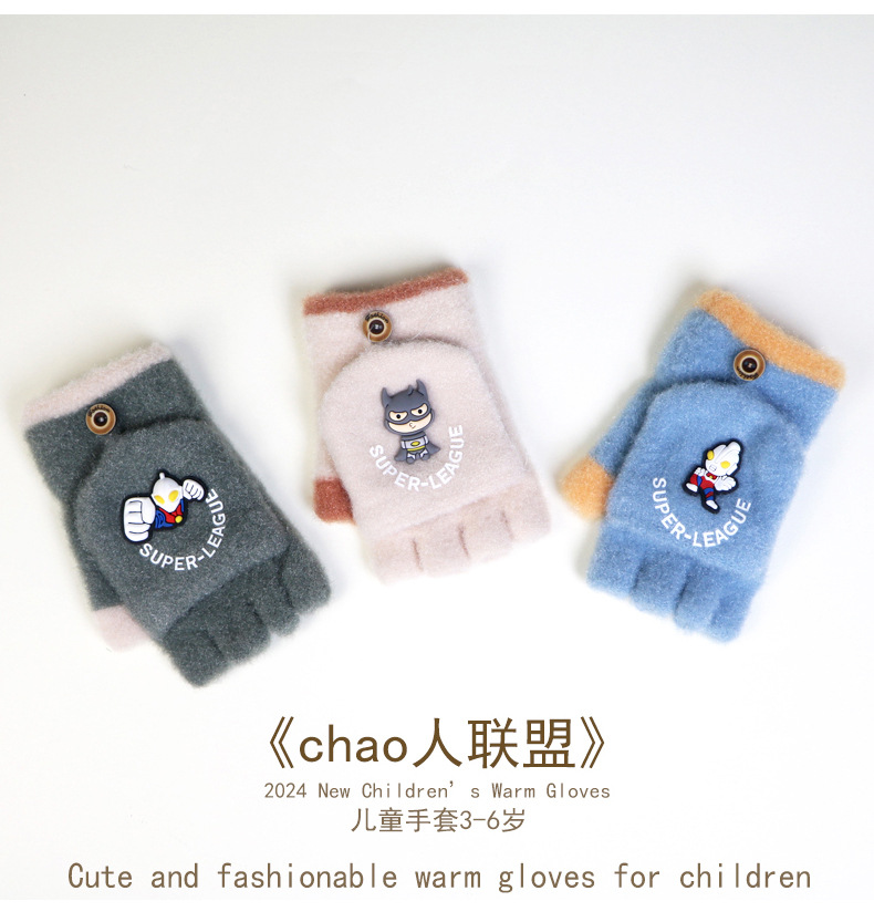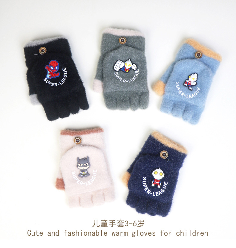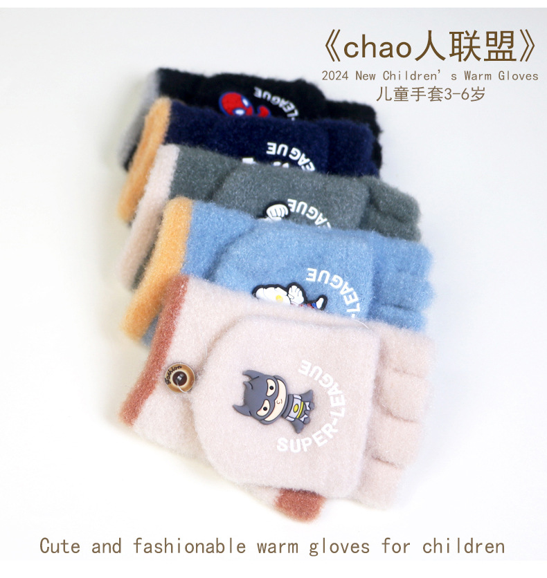 겨울 따뜻한 어린이 장갑 어린이 한국 만화 반 손가락 뒤집기 기모 방풍 따뜻한 장갑