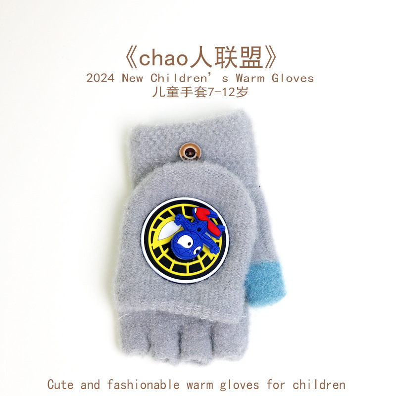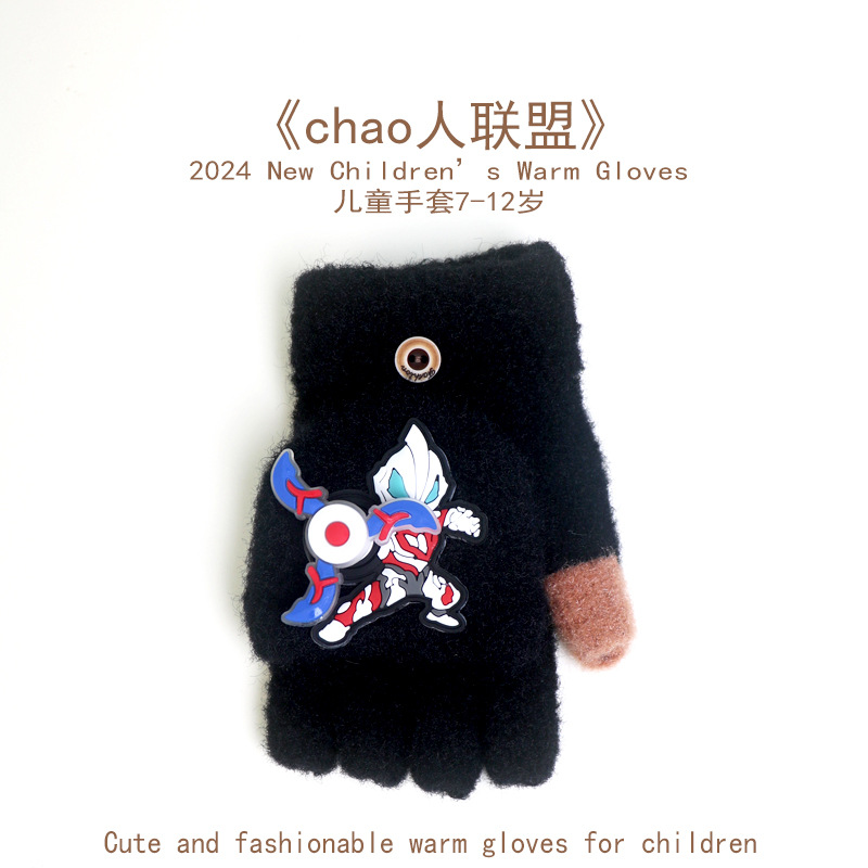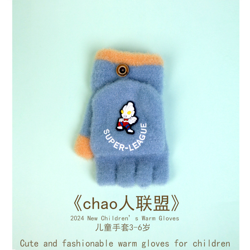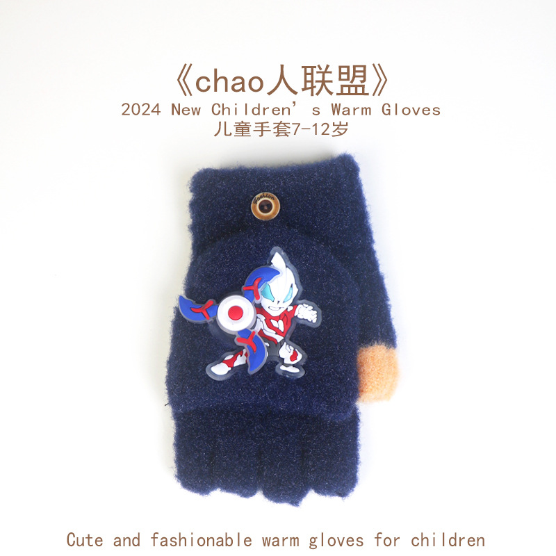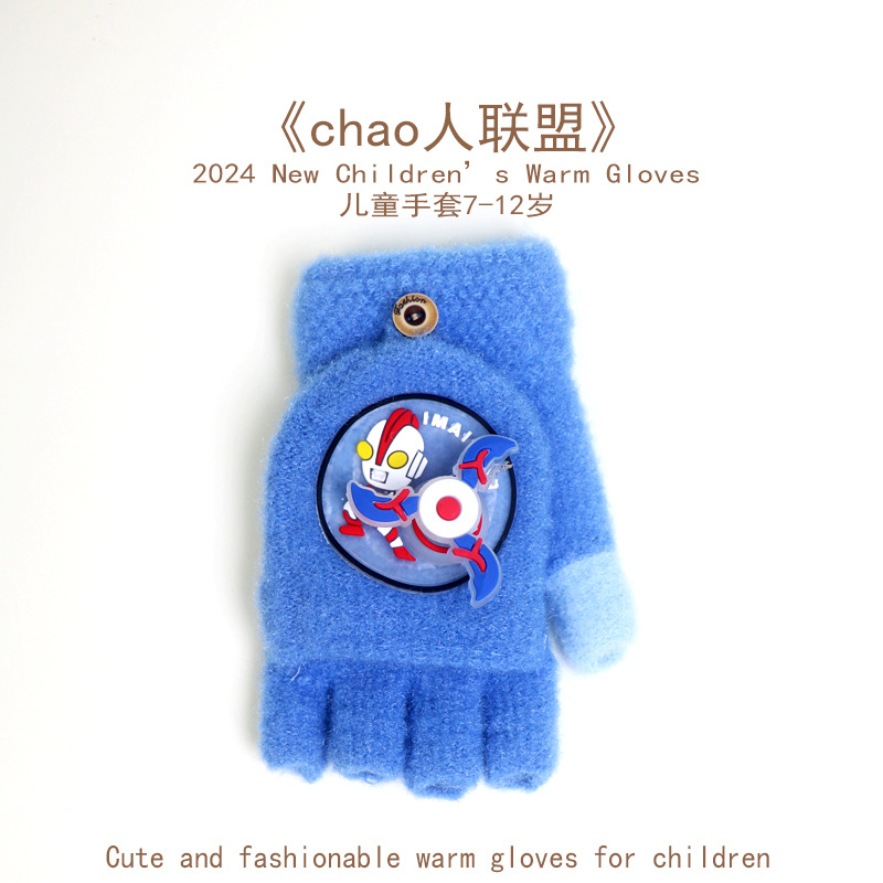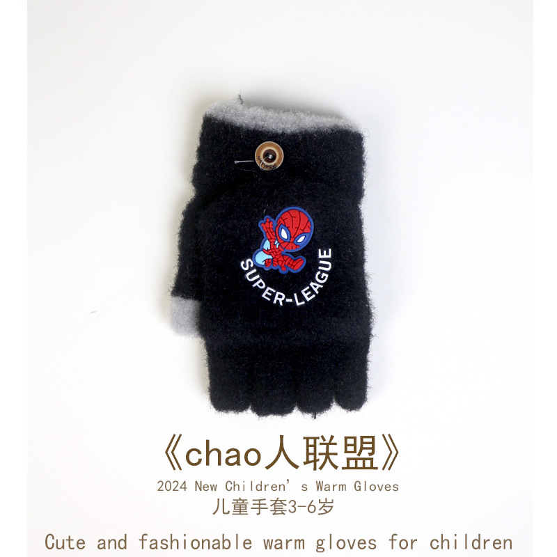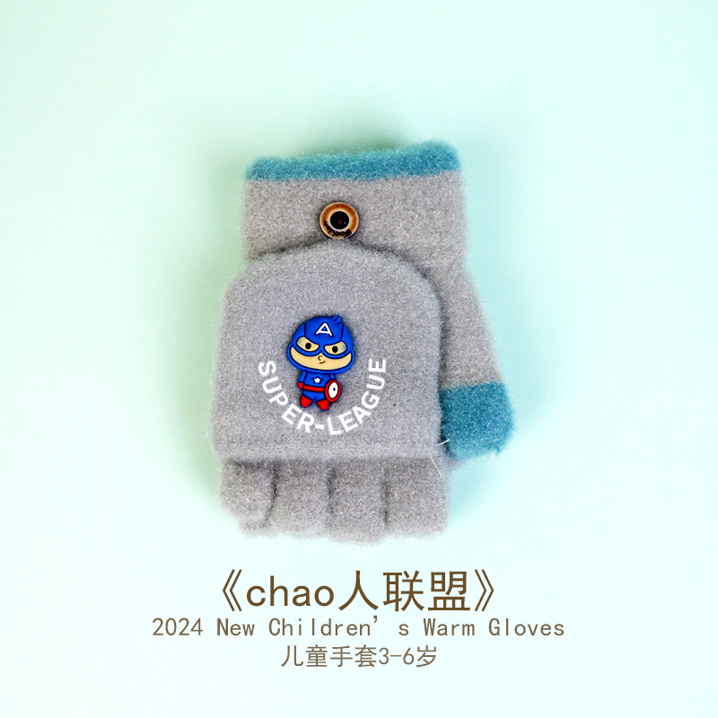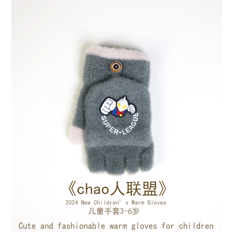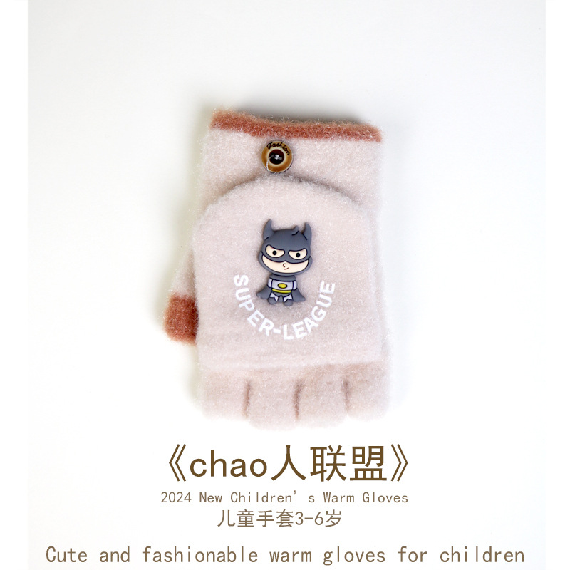 겨울 따뜻한 어린이 장갑 어린이 한국 만화 반 손가락 뒤집기 기모 방풍 따뜻한 장갑