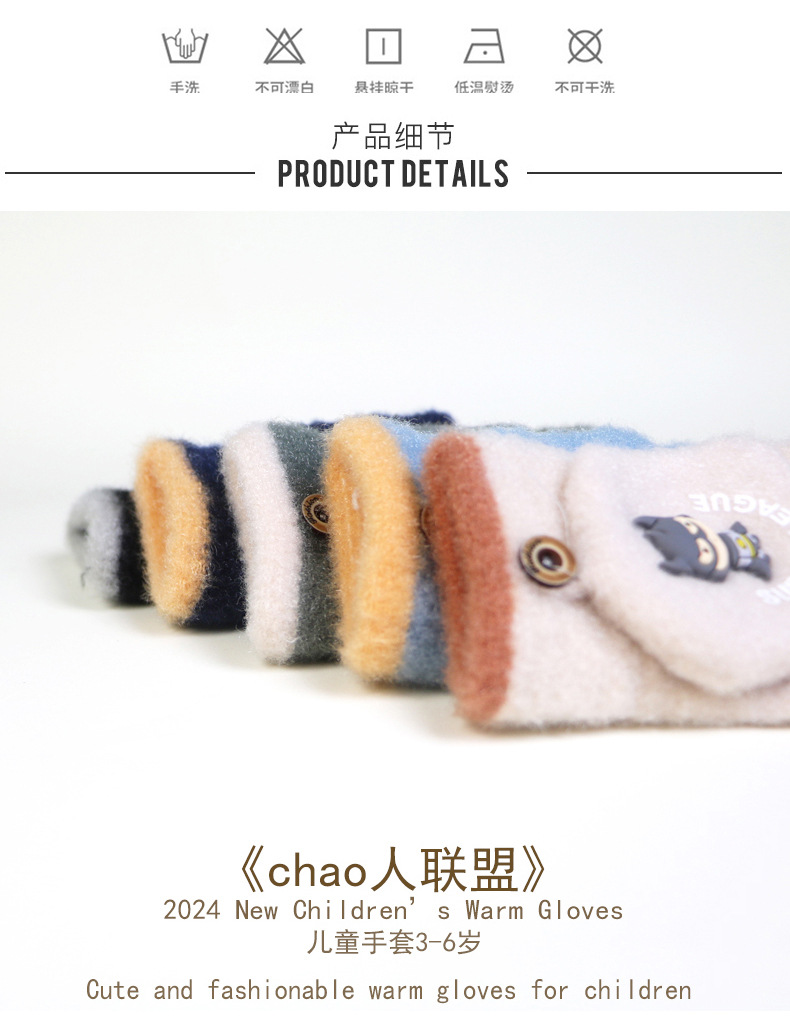 겨울 따뜻한 어린이 장갑 어린이 한국 만화 반 손가락 뒤집기 기모 방풍 따뜻한 장갑스토어 가기