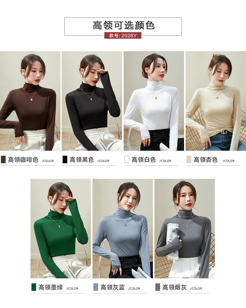 반하이넥 여성용 슬림핏 이너웨어 2025 가을 겨울 신상 긴팔 티셔츠 얇은 상의스토어 가기