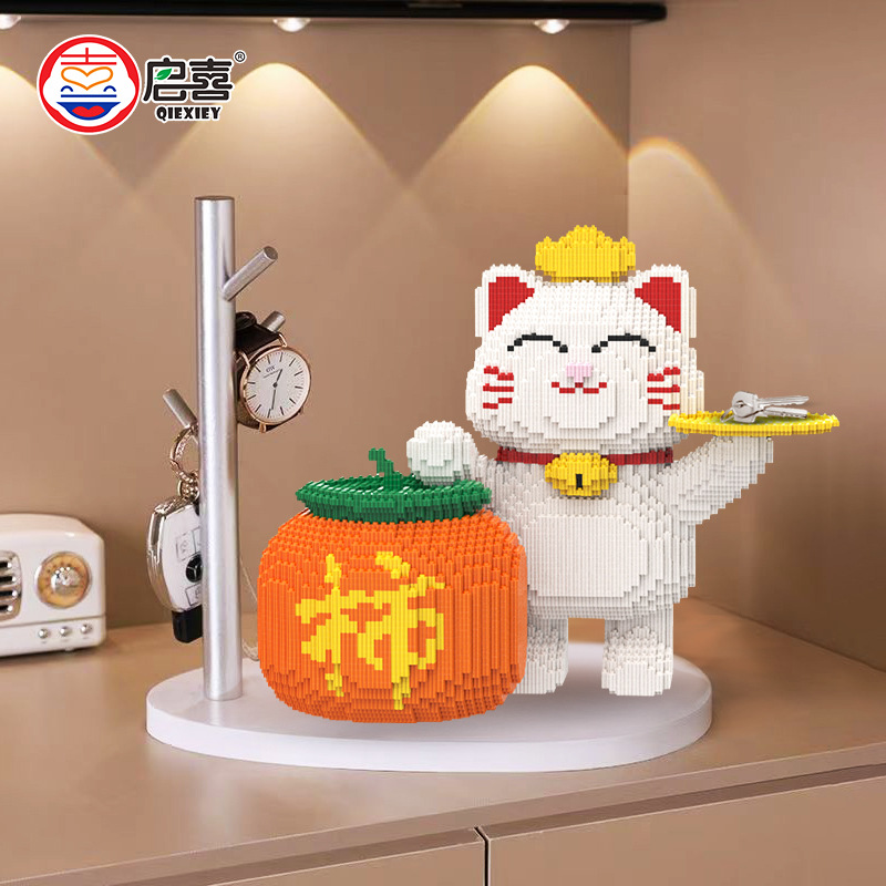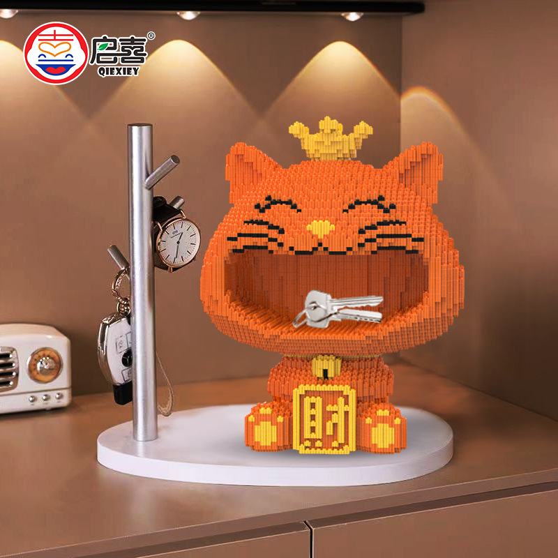 (정품 원본) 크라운 포켓 고양이 입구 키 장식품 빌딩 블록 퍼즐 조립 된 장난감 장식 거실