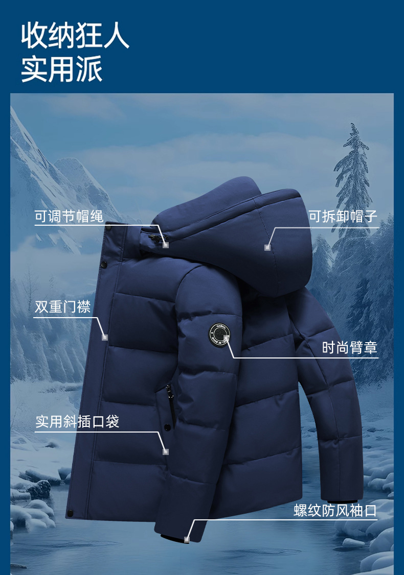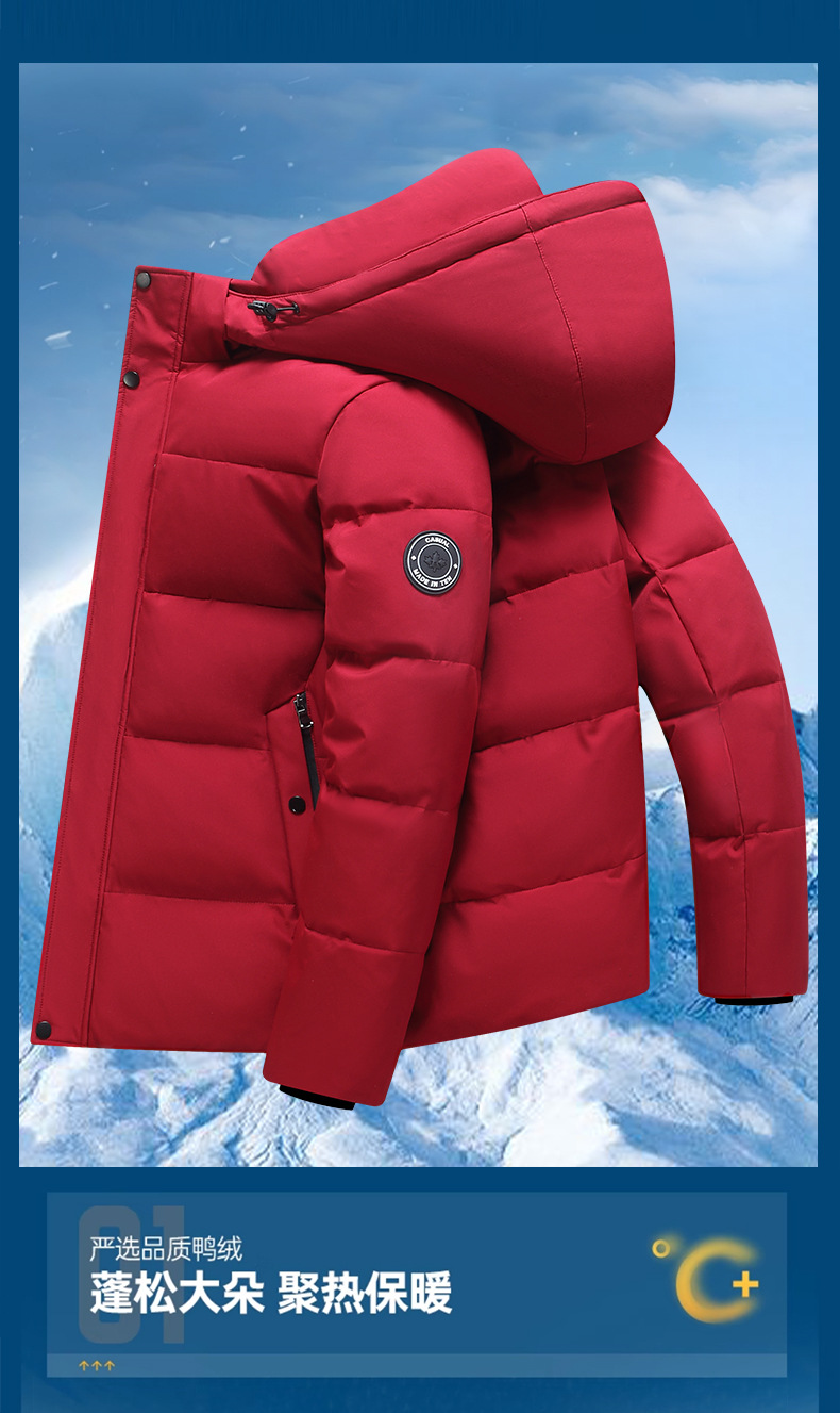 국경 도매 다운 재킷 남성용 빨간 후드 코트 겨울 흰 오리 패딩 따뜻한 방풍 재킷 생성 헤어