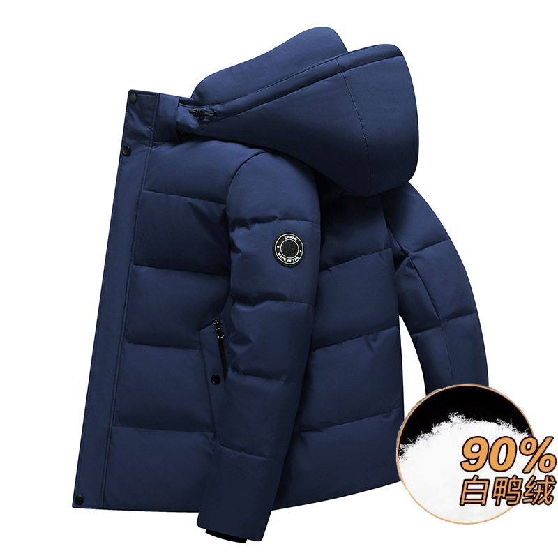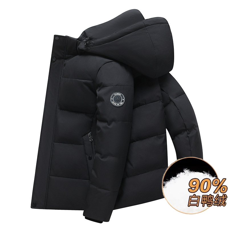 국경 도매 다운 재킷 남성용 빨간 후드 코트 겨울 흰 오리 패딩 따뜻한 방풍 재킷 생성 헤어스토어 가기