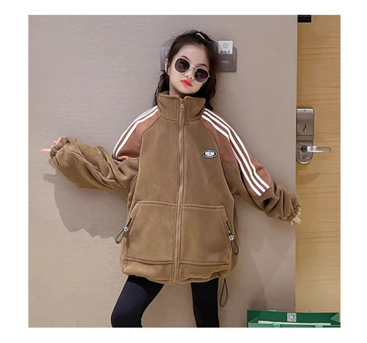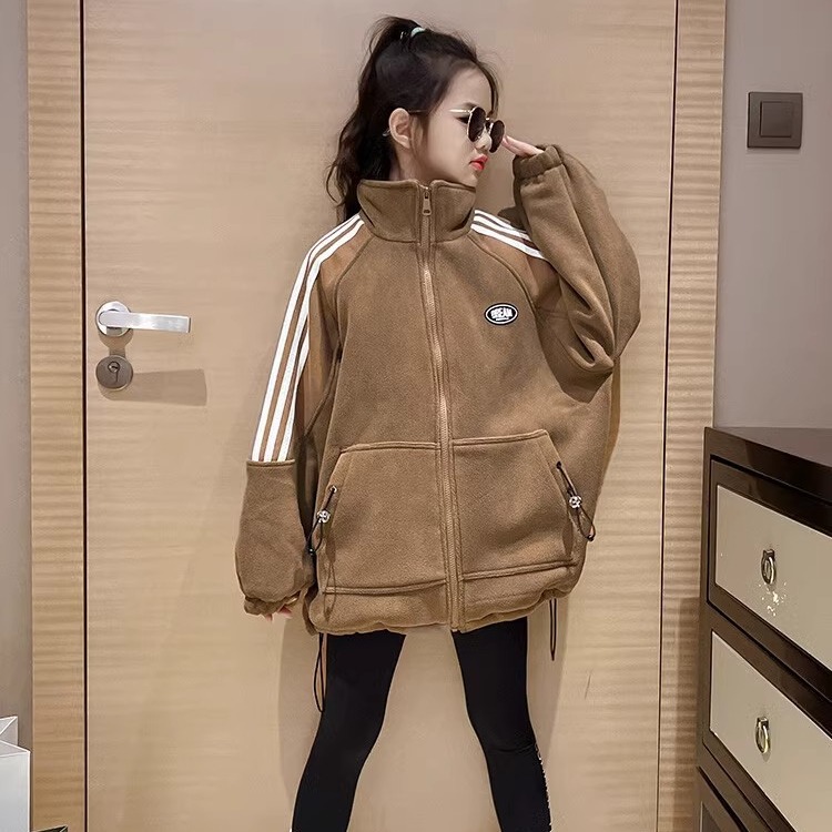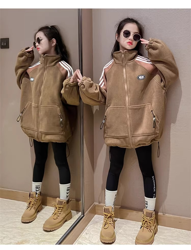 소녀 코트 가을과 겨울 2024 새로운 서양식 어린이 기모 코트 겨울 중년 및 대형 어린이를위한 캐주얼 스웨트 셔츠스토어 가기