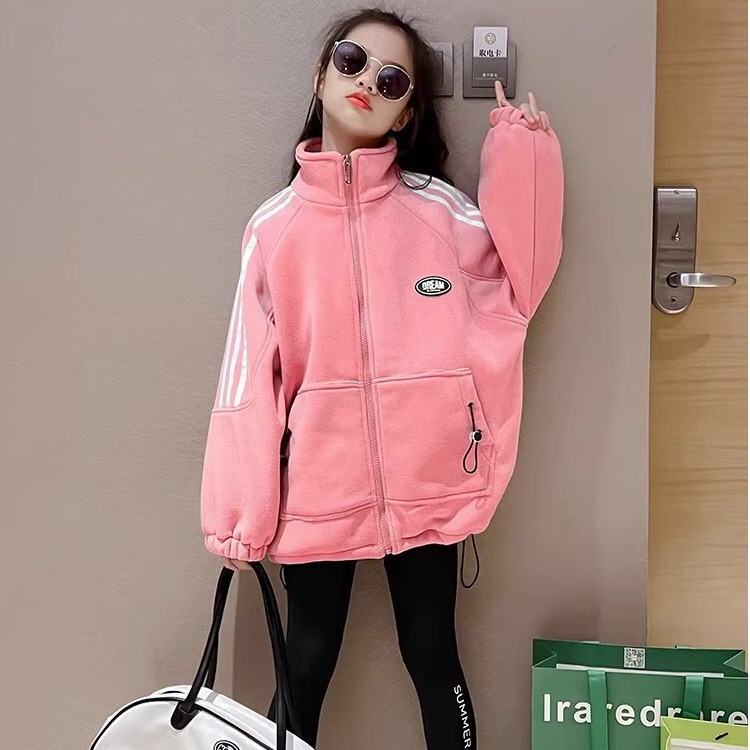 소녀 코트 가을과 겨울 2024 새로운 서양식 어린이 기모 코트 겨울 중년 및 대형 어린이를위한 캐주얼 스웨트 셔츠