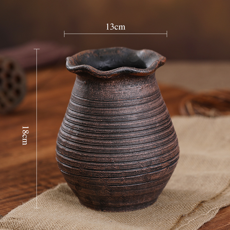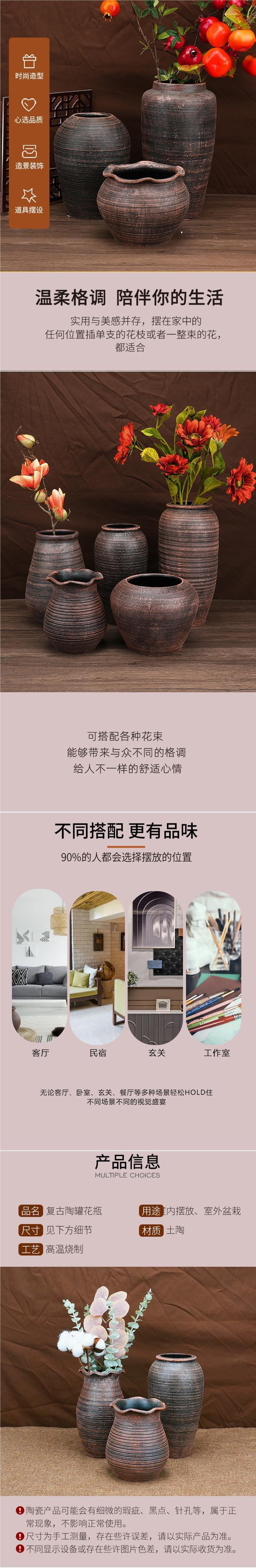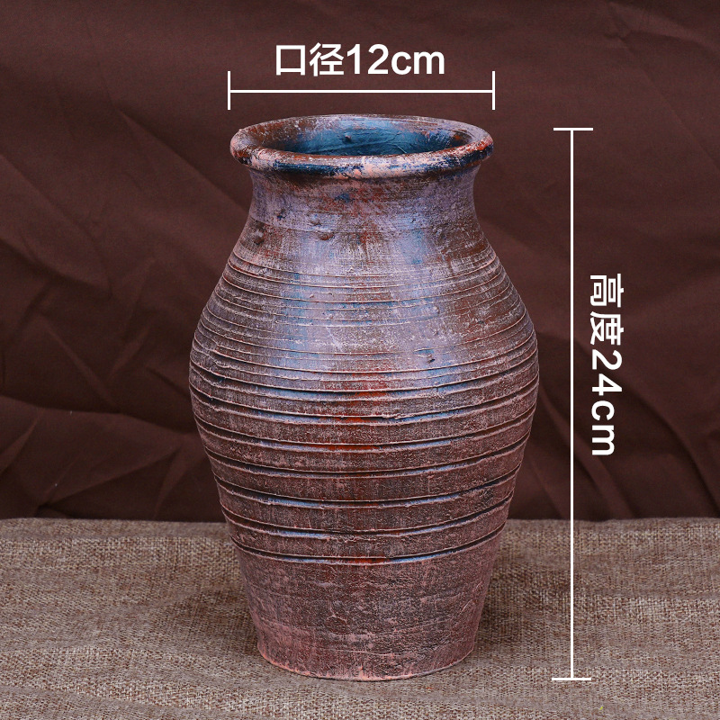 빈티지 조잡한 도자기 냄비 꽃병 장식 중국식 꽃 냄비 집 꽃 배열 말린 말린 꽃 거실 수제 오래된 골동품스토어 가기