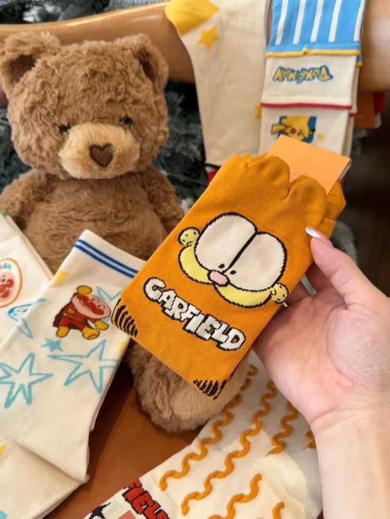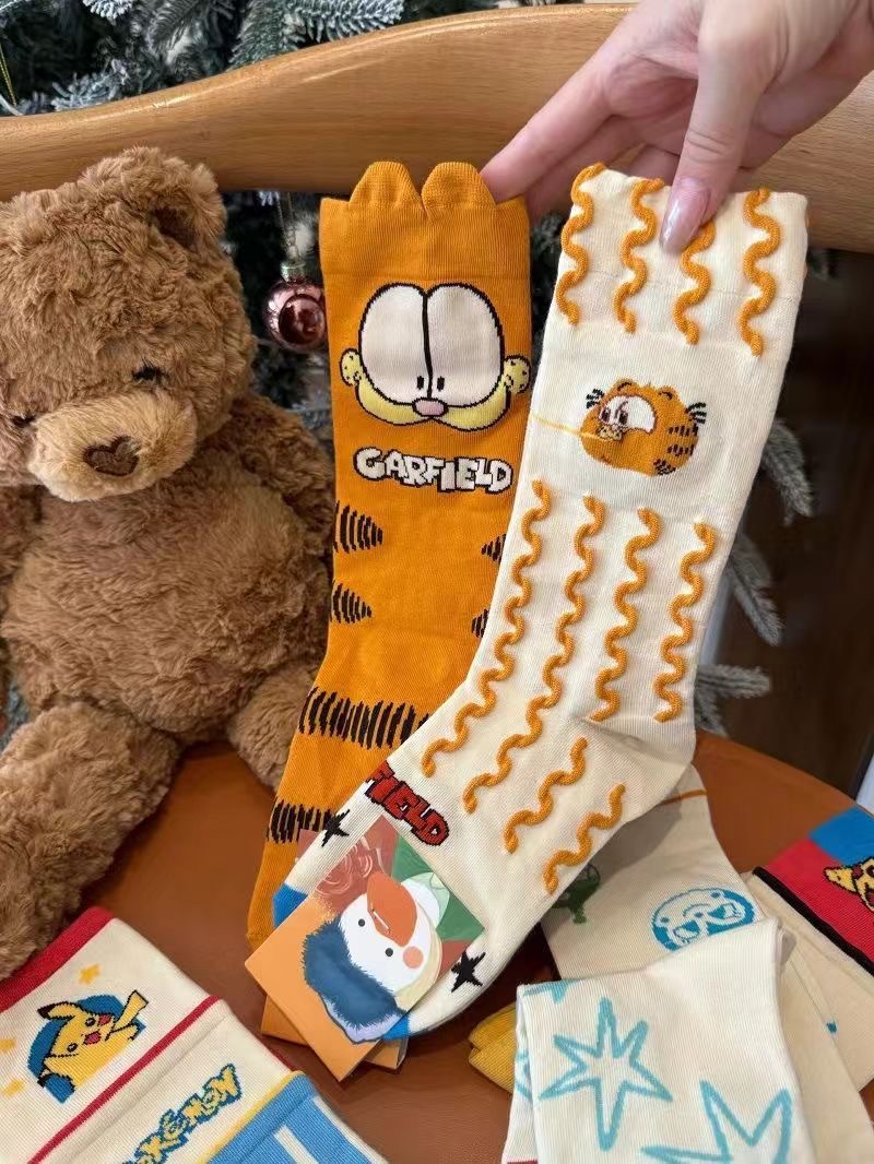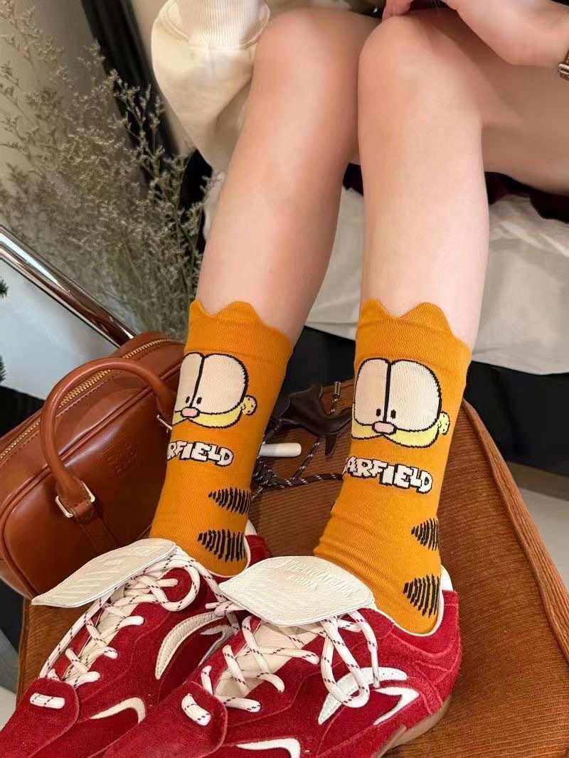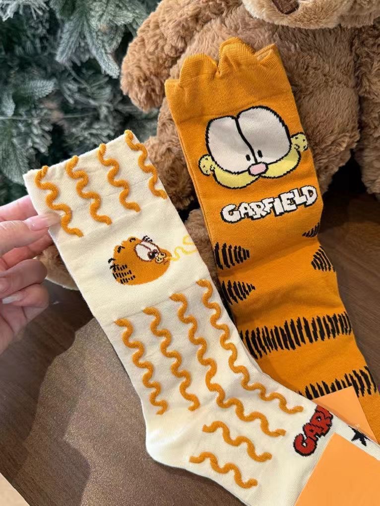 일본 귀여운 만화 가필드 양말 여성 소녀의 중간 길이 양말 가을과 겨울 스타킹 포장 양말 창조적 인 재미있는 디자인