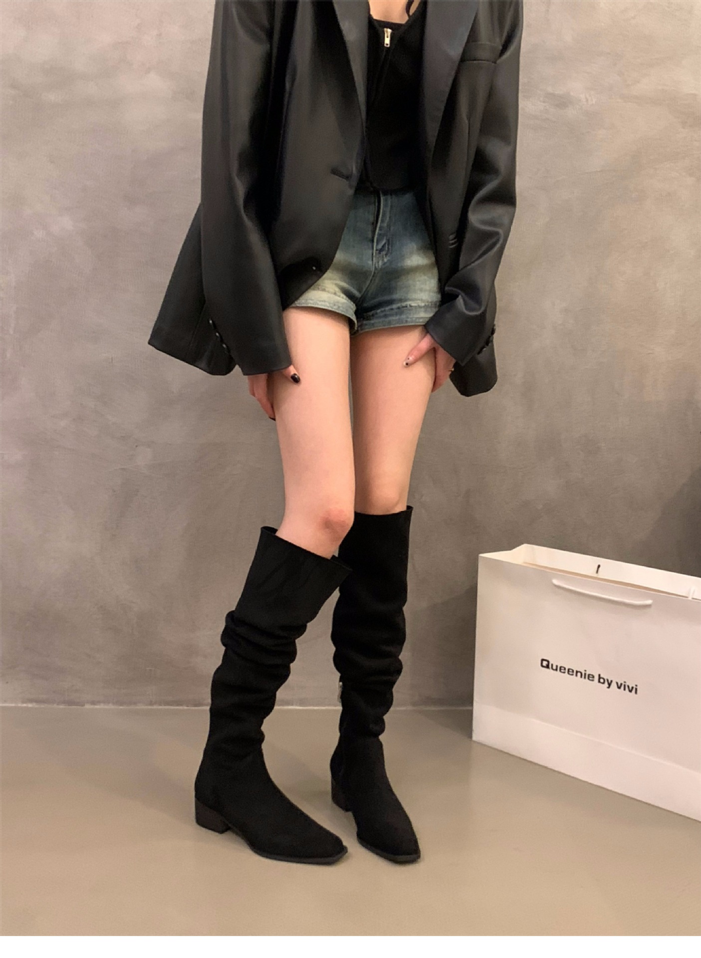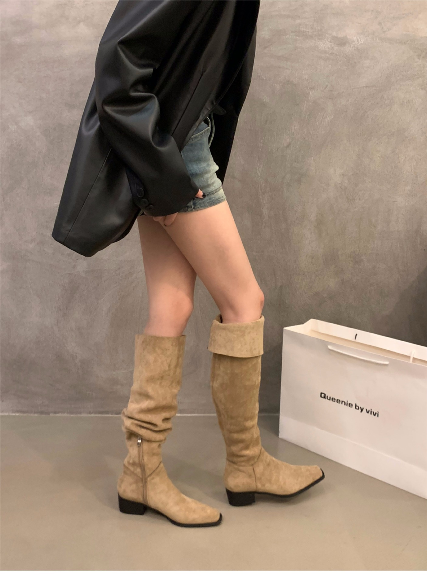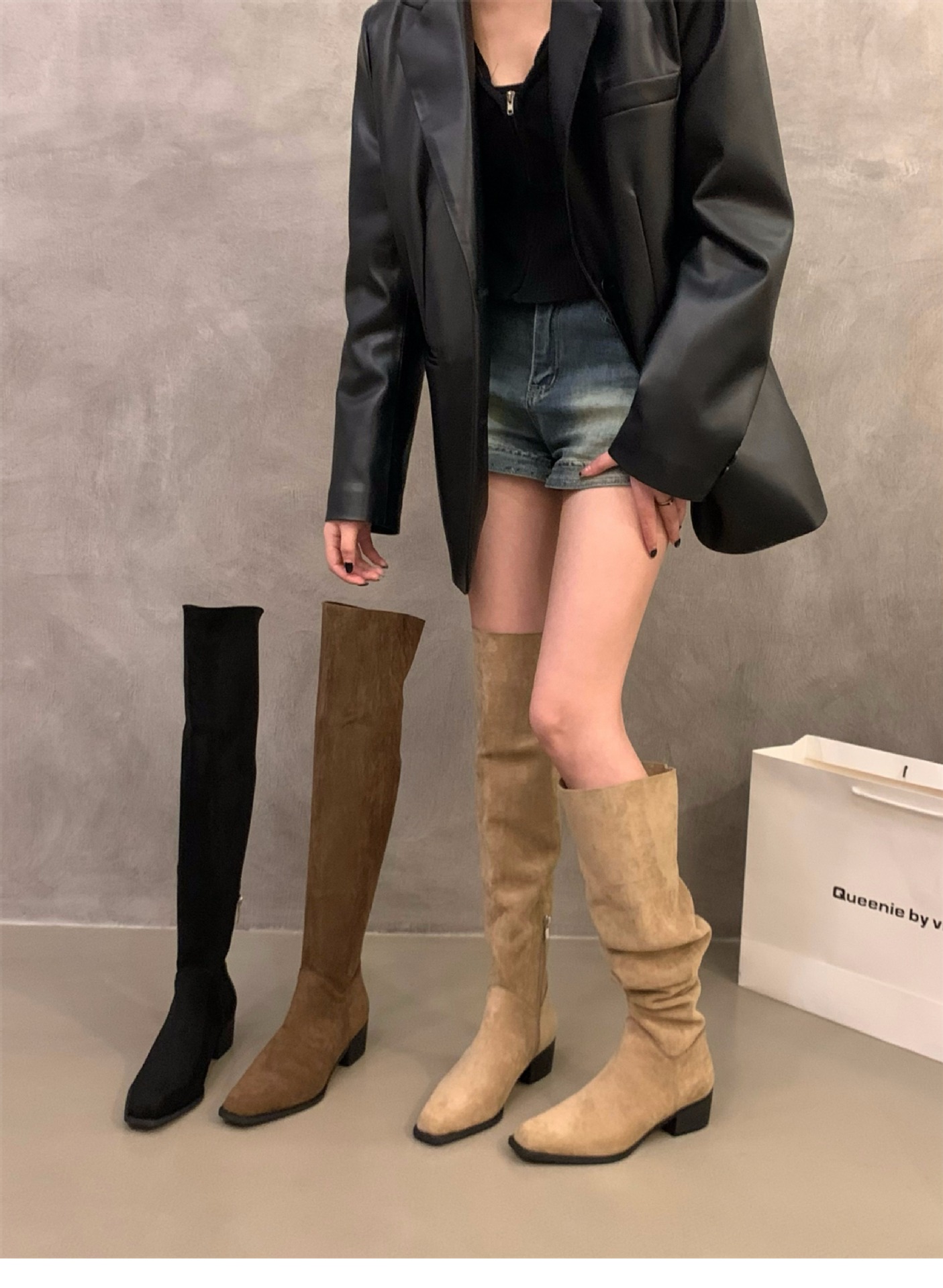 두꺼운 힐 무릎 부츠 얇은 긴 부츠 여성 신발 2024 가을과 겨울 스웨이드 카키 힙 부츠 롱 부츠스토어 가기
