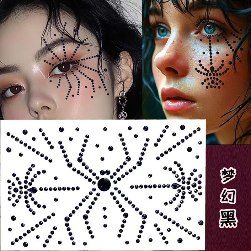 어린이 가장 무도회 놀이 자기 접착 얼굴 스티커 레트로 다크 스파이더 스티커 다이아몬드 스티커 눈썹 얼굴 스티커 다이아몬드 스티커
