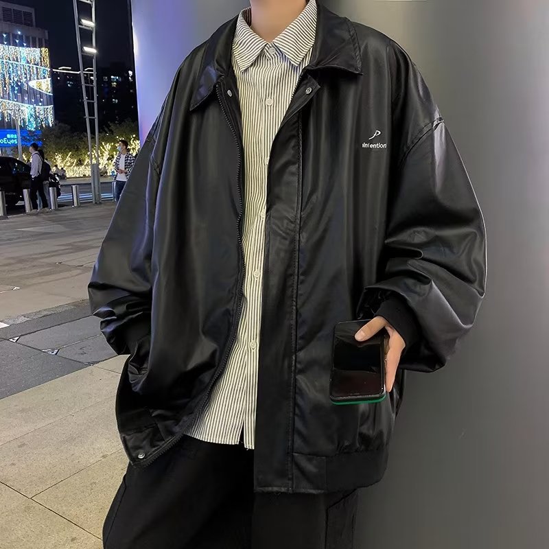 가죽 자켓 남자의 가을과 겨울 미국 스타일 트렌디 브랜드 프라이드 스트리트 강아지 잘 생긴 재킷 디자인 센스 틈새 거리 커플 바이커 세트스토어 가기