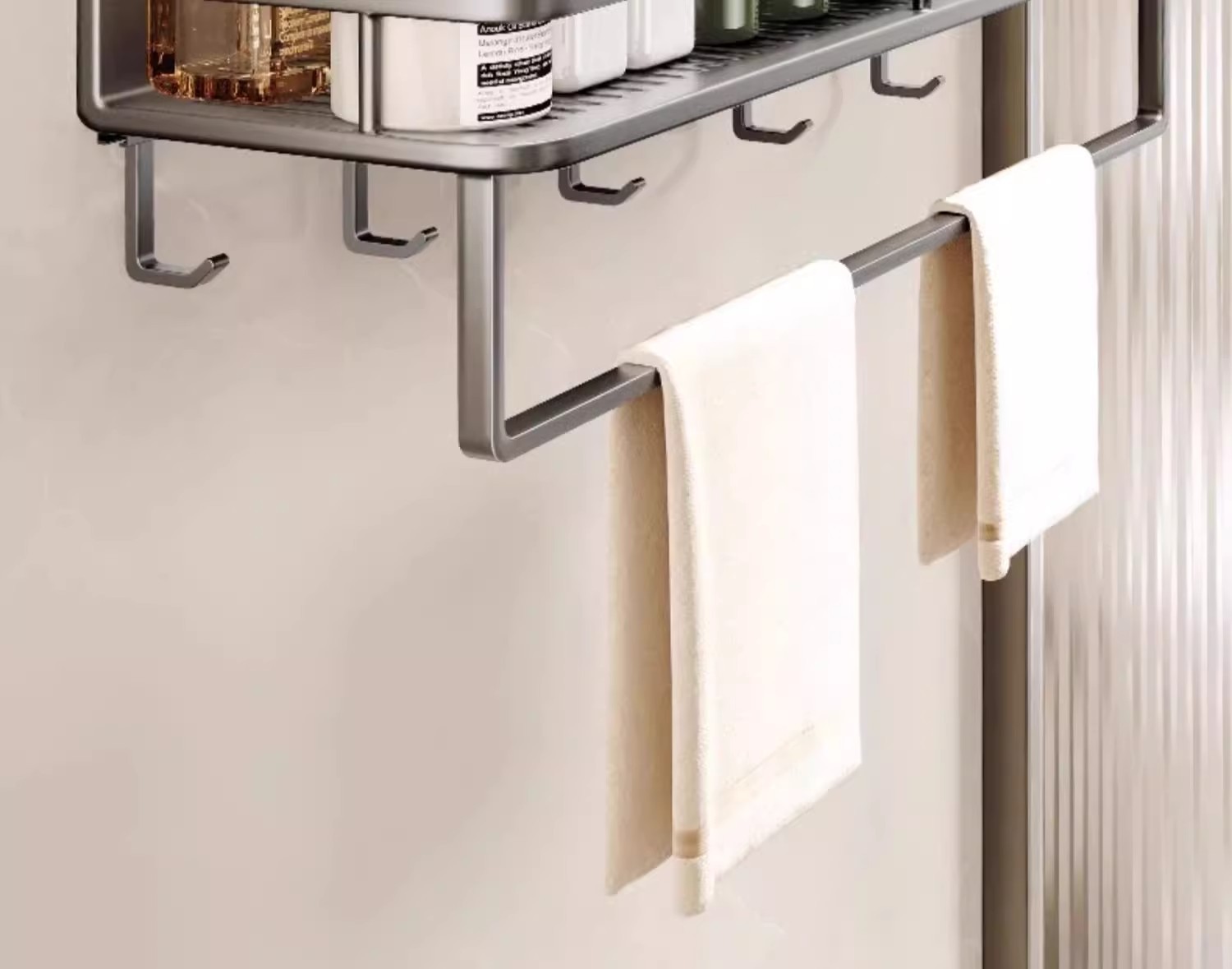 • 막대와 후크가 있는 건그레이 단층 수납선반 - 30cm [탈부착 가능]