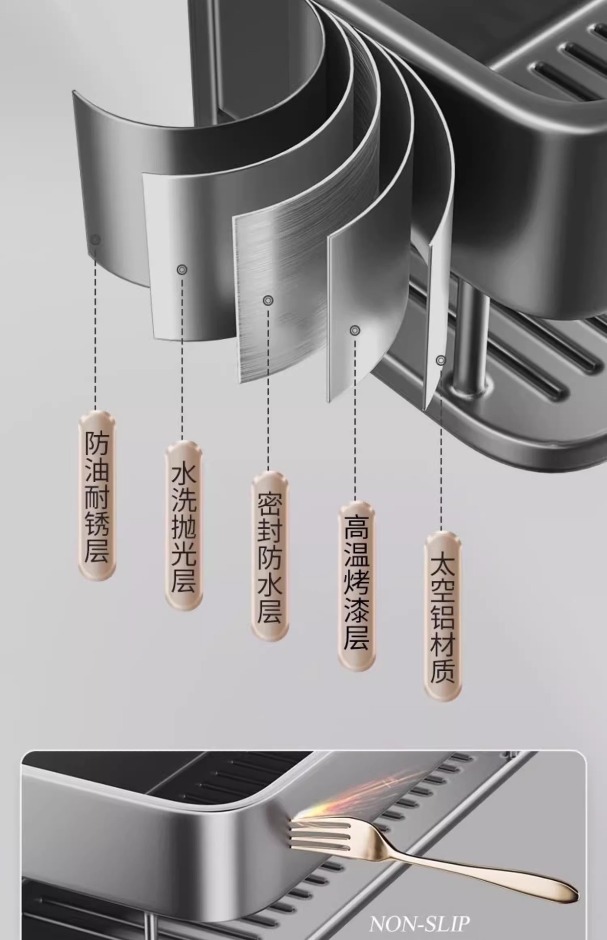 • 막대와 후크가 있는 건그레이 더블 레이어 스토리지 랙 - 40cm [탈착 가능]